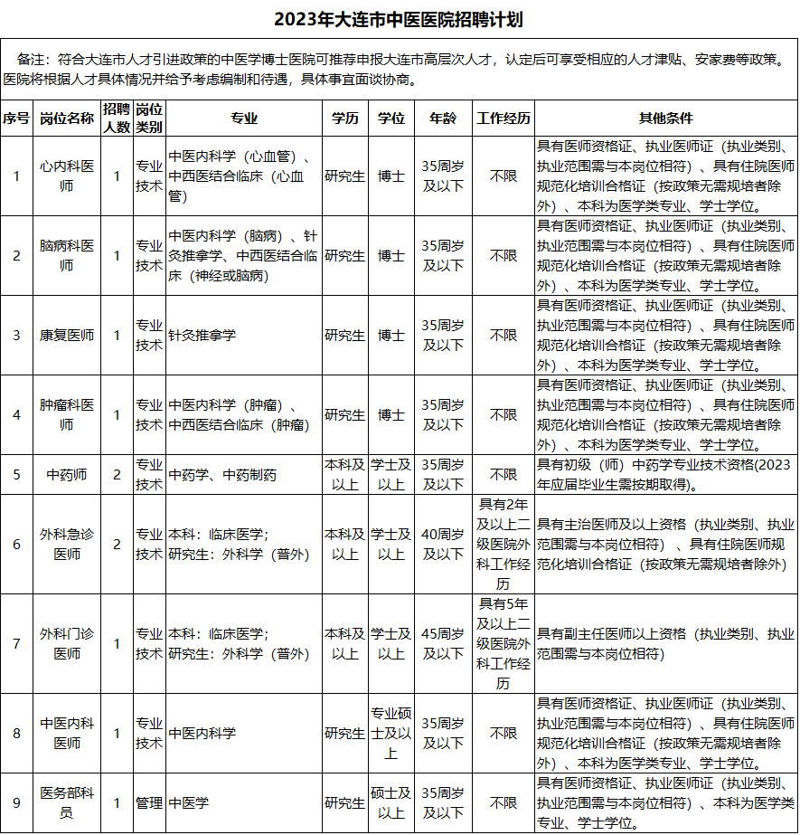 ![]() 河北中医药大学就业服务平台 心系家国 情怀天下 基层就业 大有作为 单位简介 ![]() 大连市中医医院成立于1961年,经过半个多世纪的励精图治,现已成为大连市具有较大规模,科室设置齐全,中医特色突出、教学实力强的集医疗、教学、科研、预防、保健、康复于一体的现代化综合性中医医院。也是大连市唯一以中医治疗为主、中西医并重的三级甲等医院和大连市名中医医院。 医院定编病床600张,设11个病房、15个病区,有ICU室、重症医学科和层流手术室;开设了具有传统特色的脑病科、心血管病科、肺病科、消渴病科、脾胃病科、肿瘤病科、肾病、男性病专科、针灸科、推拿科、中医康复中心、骨伤科、外科、乳腺病科、皮肤科、妇科、五官科、眼科、口腔科、小儿科、体检中心等30多个专科和高尔基路门诊部。 招聘公告 医院本次面向社会公开招聘4名中医学博士和7名合同制工作人员,具体详见附件1。 ![]() 一、招聘基本条件 1.具有中华人民共和国国籍; 2.遵守国家法律法规; 3.具有良好的品行和职业道德; 4.具有适应岗位要求的身体条件; 5.具有岗位所需的专业、技能和其他条件; 6.应聘人员学历、经历、年龄计算时间截止到2023年9月31日,如年龄超出岗位规定年龄条件不足一年的视为合格; 7.落实《转发国家卫生健康委办公厅等四部门关于贯彻落实住院医师规范化培训“两个同等对待”政策的通知》(辽卫传〔2021〕70号)要求:“面向社会招收的住院医师如为普通高校应届毕业生的,其住培合格当年在医疗卫生机构就业,按当年应届毕业生同等对待”“经住培合格的本科学历临床医师,按临床医学、口腔医学、中医专业学位硕士研究生同等对待”,符合“两个同等对待”政策的人员可以应聘相应岗位。 有下列情形之一者不得报考: 1.受到党纪、政纪处分期限未满或者正在接受纪律审查的人员; 2.受刑事处罚期限未满或者正在接受司法调查尚未做出结论的人员; 3.近5年内在公务员考录、事业单位招聘中被认定为有考试作弊行为且不能报考的人员; 4.现役军人、在读的非应届高校毕业生(含在读非应届全日制研究生)不能以已取得的本科或专科学历报考; 5.法律法规规定不得招聘到事业单位的其他情形的人员; 6.报考人员不得报考录用后即构成回避关系的招聘岗位。 二、招聘程序 (一)发布招聘信息 本次招聘信息自2023年9月19日起通过大连市中医医院官方微信公众号、大连市中医医院官网(www.dl-zyy.com)同步公开发布。 (二)报名方式、时间及材料要求 1.报名方式:本次招聘采取网上报名的方式进行。请应聘人员仔细对照招聘条件,符合岗位招聘条件人员可将PDF版报名材料发送至电子邮箱dlzyyyzp@126.com,进行网上报名。材料要求为电子版扫描件,并按下列材料顺序整理为一个PDF文件(切勿上传照片、EXCEL表格形式等多个附件)。报名邮件主题及文件命名格式为“姓名+岗位名称”,请勿重复投递,在第三方渠道投递报名材料无效。 报名截止时间:公告下发之日起至2023年9月25日止。 2.报名材料: (1)《大连市中医医院2023年招聘人员报名表》; (2)二代居民身份证正反面、毕业证、学位证(大专、本科、研究生及博士); (3)国内高校毕业生登录“中国高等教育学生信息网”打印的“教育部学历证书电子注册备案表” (验证码需在有效期内,且大专、本科及研究生各阶段均需提供)。 (4)岗位有职称和执业资格准入要求的,应提交职称证、执业证、住院医师规范化培训合格证; (5)工作经历界定以劳动合同及保险缴费证明为准(两者需同时具备); (6)岗位要求的其他条件的证明材料。 3.报名要求: 应聘人员需如实提交有关信息和材料,报名时必须使用二代《居民身份证》且与考试使用的身份证一致。 (三)资格初审 报名结束后,我院将严格按照岗位用人条件对应聘人员进行资格审查,对应聘人员提交的相关材料等进行审核,在整个招聘过程中,对于不符合岗位要求或弄虚作假的应聘人员一律取消应聘资格。 (四)考试考核 本次招聘分为笔试、面试两部分,均实行百分制,中医学博士主要采取面试的考核方式。其中,面试成绩合格分数线为60分,未达到面试合格分数线的报考人员不予录用。 笔试、面试成绩权重比例4:6,最终依据考试总成绩,从高分到低分按岗位招聘计划1:1的比例确定参加考察和体检人员。总成绩并列者,按笔试成绩由高分到低分确定拟录用、考察和体检人员;拟录用人员名单经院领导集体审议后,将在医院官网进行公示。 (五)考察和体检 1.考察 考察侧重于应聘人员思想政治表现、道德品质、与应聘岗位相关的业务能力和工作实绩等,同时对考察对象资格条件进行复查。 2. 体检 考试、考察合格的人员应在规定时间内到指定医疗机构进行体检。体检标准参照国家有关政策规定执行。应聘者如对体检结论有疑议,可在接到体检结论7日内,以书面形式向我院提出复检申请,复检内容为对体检结果有影响的项目,复检只能进行一次,最终体检结果以复检结论为准,因体检不合格而产生的招聘岗位空缺,按要求依次递补。对于在体检过程中,弄虚作假或隐瞒真实情况的报考者,不予招聘或取消招聘。 (六)公示和聘用 最终考察和体检合格者(即拟录用人员),将于大连市中医医院官网进行公示。公示期满无异议后,按规定完备用人手续。 三、相关事项 1.报名采取诚信承诺制,考生应承