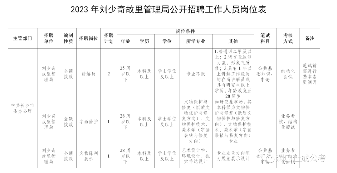 此次招聘岗位3个,招聘计划4名,详见附件:《2023年刘少奇故里管理局公开招聘工作人员岗位表》