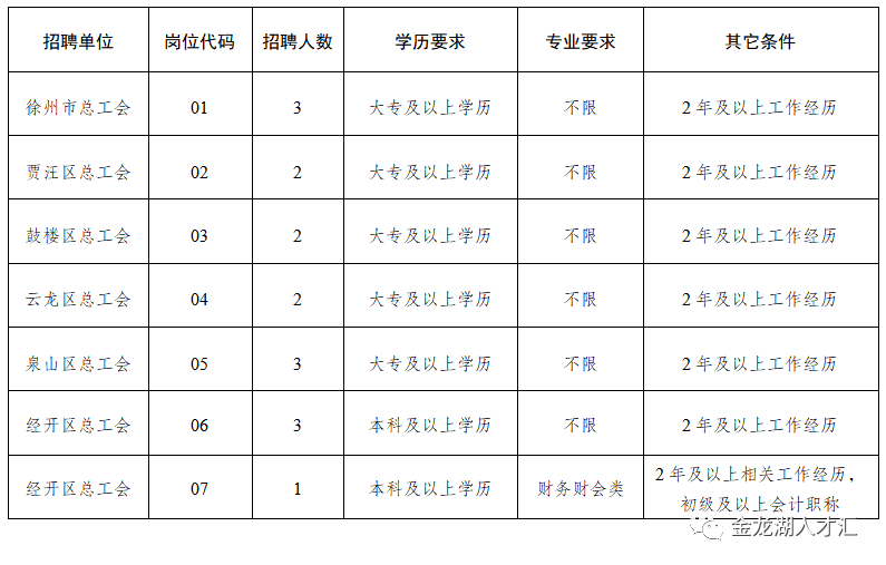 为进一步充实工会工作队伍,加强基层工会建设,根据工作需要,徐州市工会系统面向社会公开招聘社会化工会工作者16名。现将有关事项公告如下: ![]() 一、招聘单位、岗位及人数