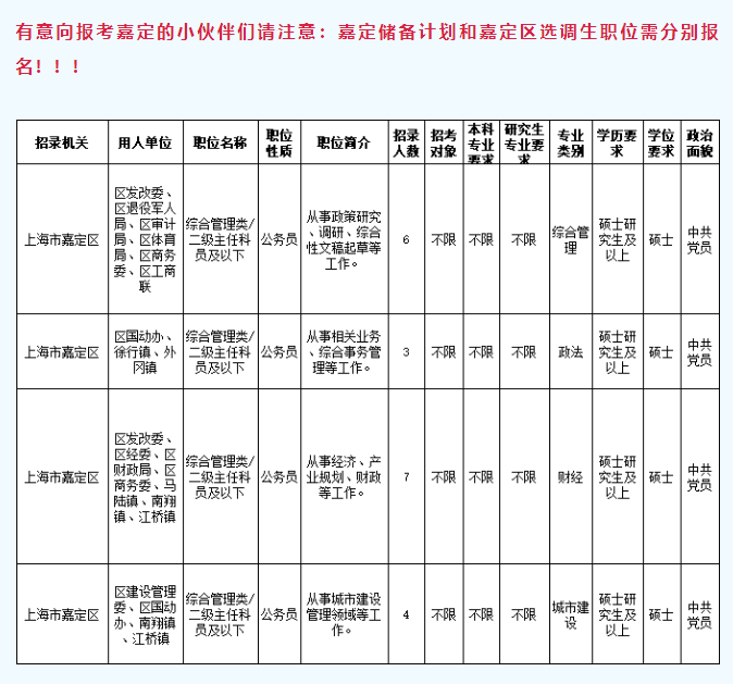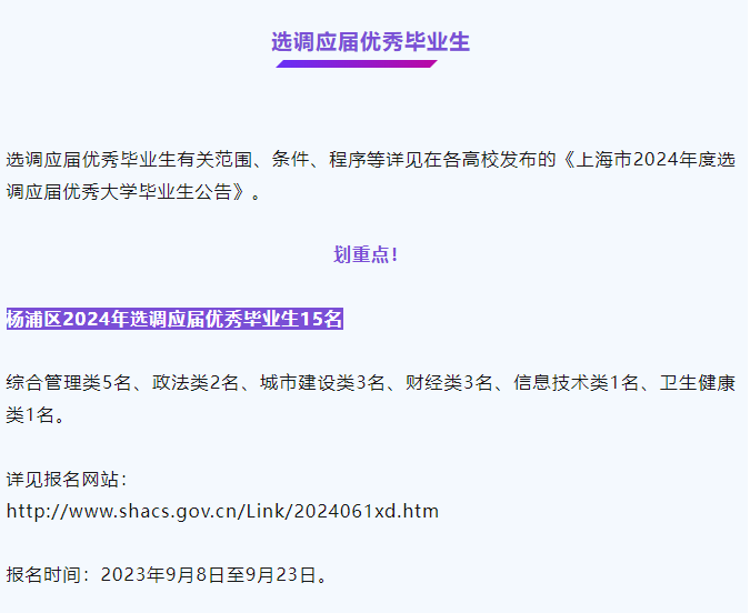3、【嘉定】2024年优秀大学毕业生储备计划(选调生)招录公告
