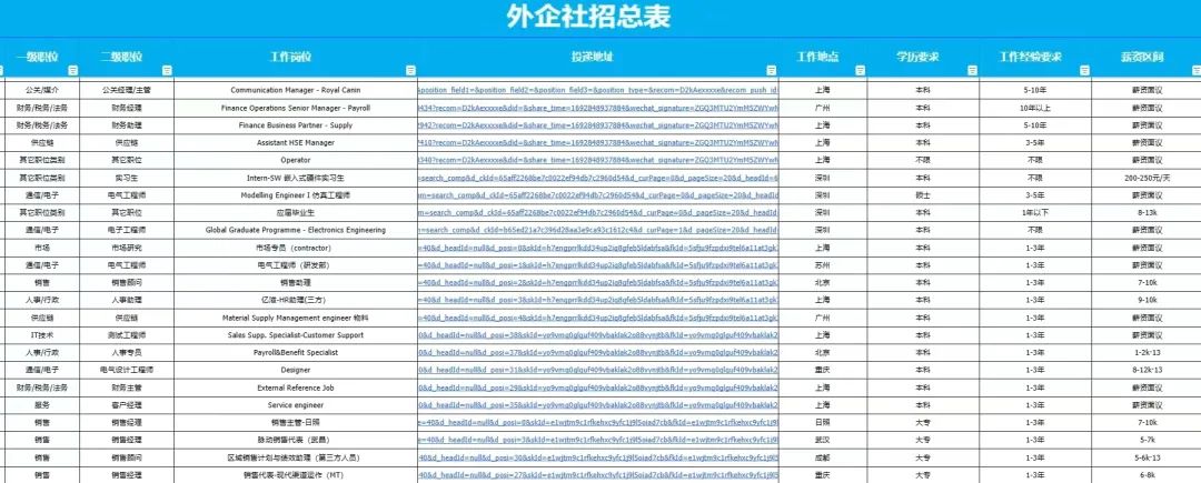 *此处并未展示全部岗位,在后台回复【开云】,查看全部岗位详情 03 工作地点 ★成都 ★南京 ★重庆 ★天津 ....and more 04 投递方式 (请复制完整的关键词。发送后没有立即收到回复的话,即是关键词有误,请重新发送正确关键词 ) 05 求职资料 招聘信息来源于网络,仅作分享,如有侵权,请联系删除 投递时仔细甄别,提高防范意识,保护财产安全 往期推荐 更多外企岗位推荐 ![]() 国内社招推荐 往届毕业生/在职人士推荐关注这个公众号? 为你推荐500强/独角兽/风口行业/国央企等社招机会 留学生社招/校招推荐 为你推荐500强/独角兽/风口行业/国央企等社招/校招机会 企业合作 有需求的企业/组织/HR请扫描添加下方二维码?