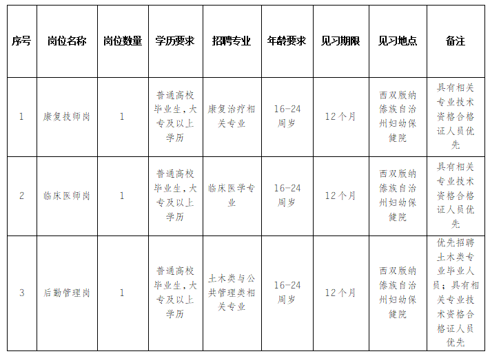 >【招聘公告】西双版纳州妇幼保健院2023年就业见习岗招聘公告