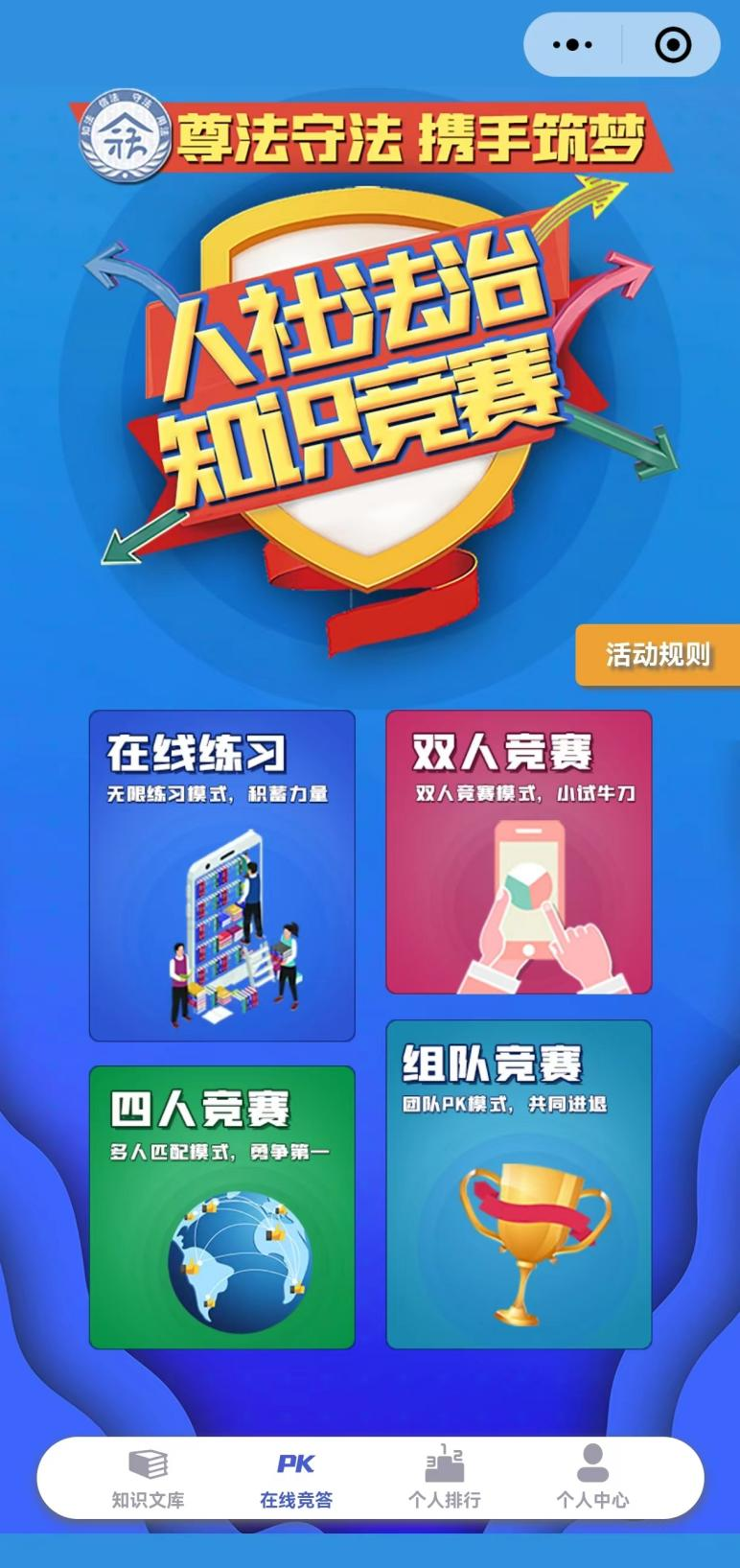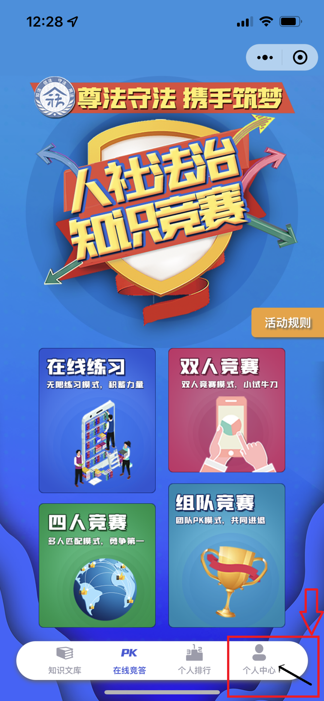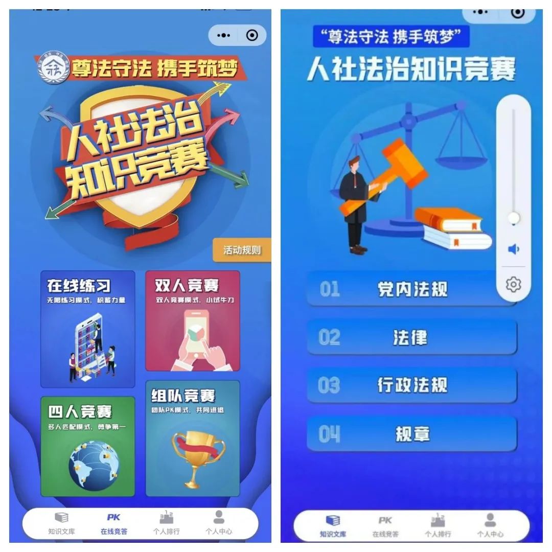 ![]() 一、活动时间 2023年9月1日至9月30日 ![]() 二、题目内容 深入宣传学习习近平法治思想、宪法、民法典、劳动法、就业促进法、劳动合同法、劳动争议调解仲裁法、社会保险法、安全生产法、职业病防治法、工会法、保障农民工工资支付条例、女职工劳动保护特别规定等法律法规以及近期开展的失业保险基金管理问题专项整治、职业技能培训和评价专项整治等涉及的政策法规。 ![]() 三、 参加人员 全省人社系统(含乡镇(街道)、村(社 区)基层服务平台)干部职工;广泛发动机关、企事业单位及社会公众参与。 ![]() 四、参与方式 1、扫描小程序进入答题 ![]() 2、通过“随县阳光人社”微信公众号进入答题 (1)搜索“随县阳光人社”微信公众号 (2)公众号左下角菜单栏点击“政策宣传”中的“人社法治竞赛” ![]() (3)进入答题小程序页面(点击右下角“个人中心”完善信息) ![]() 具体操作步骤详见如下...... ![]() 微信注册参与人社法治知识竞赛步骤共5步,请按找要求注册,参与答题。 步骤一 扫码进入主页面 打开微信程序扫描以下二维码进入人社法治知识竞赛主页面 (任选其一码扫一扫) ![]() ![]() 步骤二 点击个人中心完善个人资料 进入主界面后,点击右下角“个人中心”完善资料! ![]() 步骤三 完善个人资料并注册 1 在昵称栏目输入自己名字 ![]() 2 点击所在地区栏目选择湖北省--随州市--随县后点击确定 ![]() 3 点击用户类型栏目选择相应身份类型后点击确定后点击确定 ![]() 4 点击确认注册完成注册返回人社法治知识竞赛主页面 ![]() 步骤四 进行人社法治知识学习:点击知识文库选择相应内容点击学习 ![]() 步骤五 点击“在线竞答“,选择答题方式进行答题并获得积分(如何获取积分可点击活动规则查看) ![]() 总策划:杨金群 苏喜武