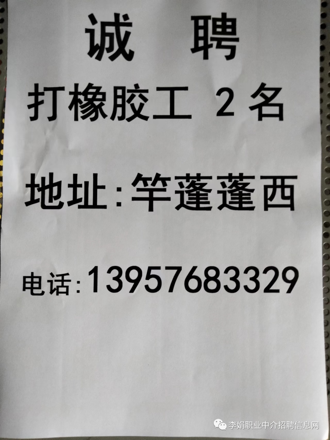 招聘:打橡胶 2名 有住宿 地址 :峰江打网桥 电话:15888681111