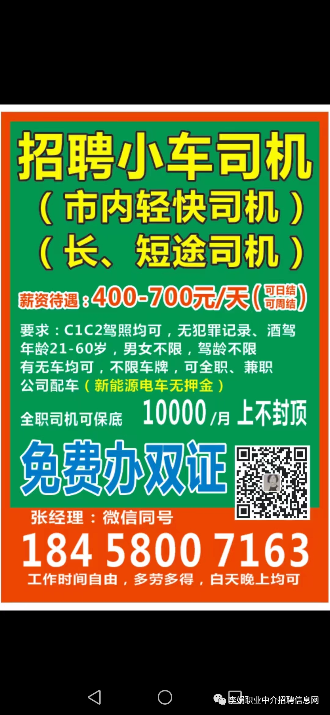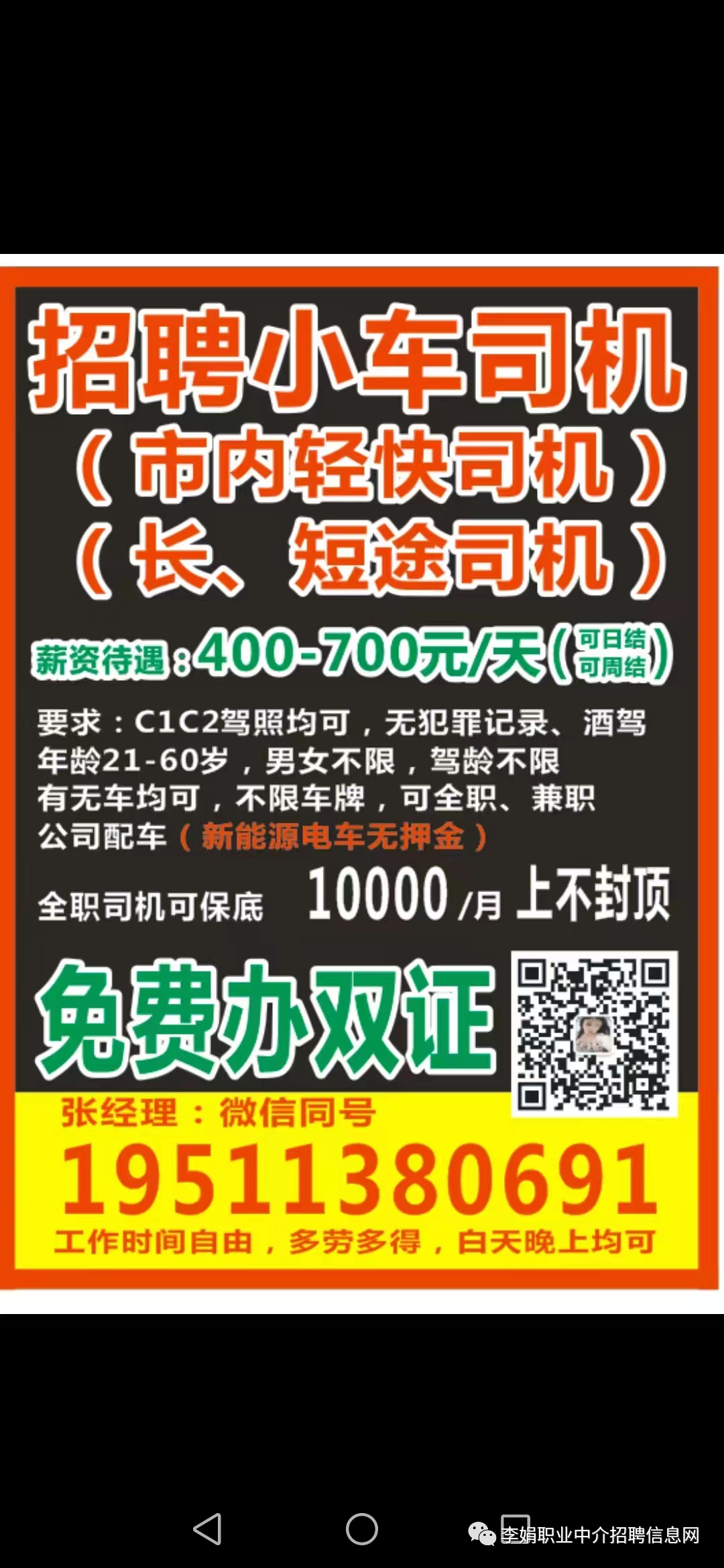 招聘:小货司机 1名 工资:7000/月 地址:滨海 电话:13511444449