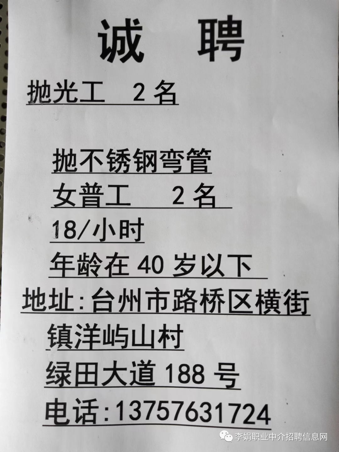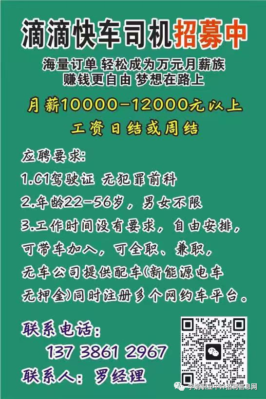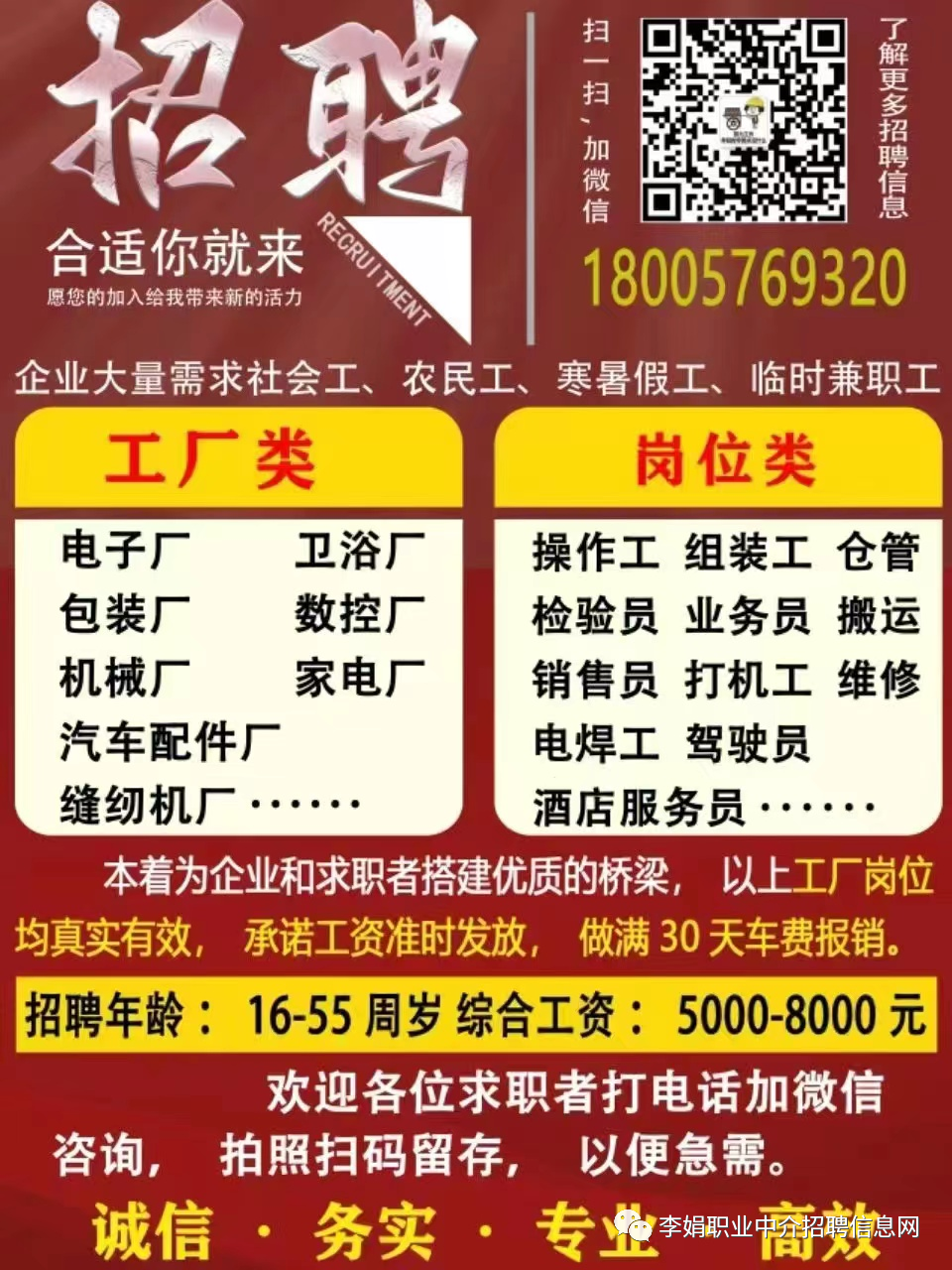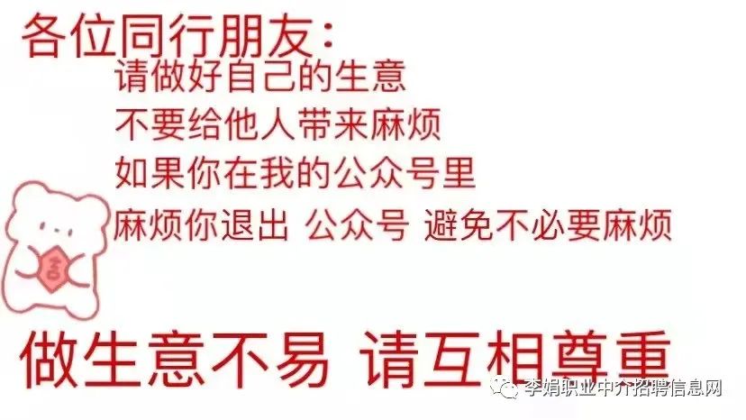求职时请说是在李娟人力资源网看到的, 谢谢! 每天5:30前准时发布招聘信息~ 李娟人力资源网 联系电话:13185765318