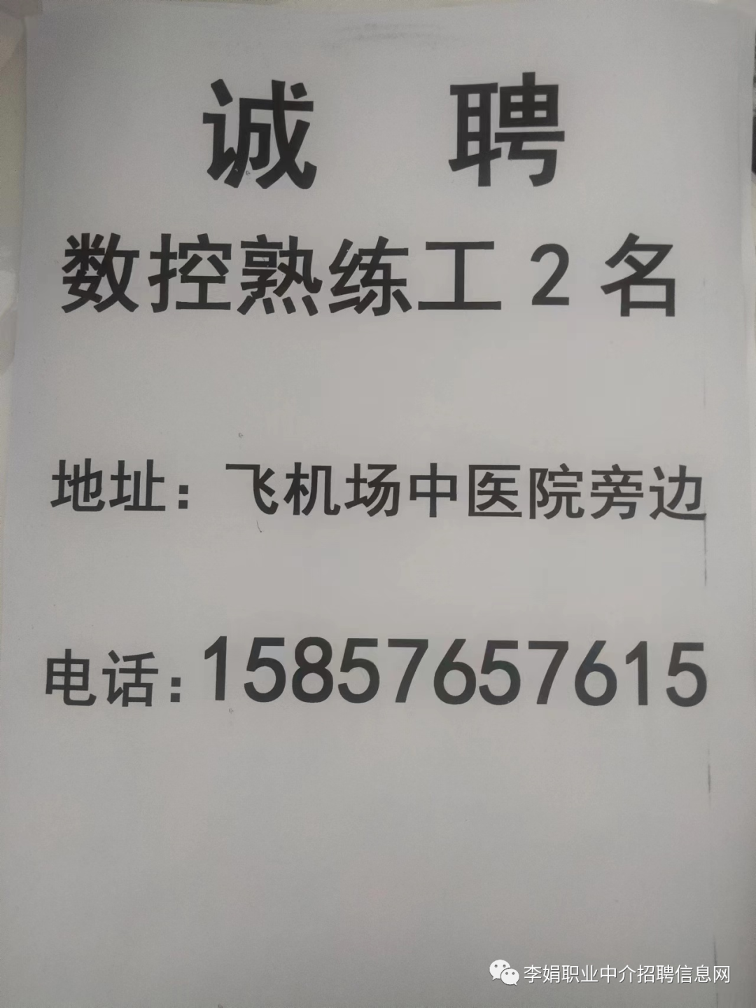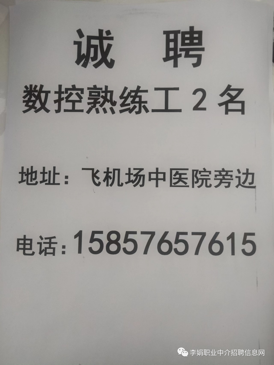 招聘 数控操作工2名 地址:滨海新区 电话13173700088