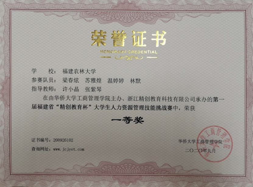 ![]() 人力专业学生参加第三届全国大学生人力资源管理知识技能全国总决赛获一等奖 ![]() 人力专业学生参加第四届全国大学生 人力资源管理知识技能全国总决赛获一等奖 ![]() 人力专业学生参加第一届福建省“精创教育杯” 大学生人力资源管理技能挑战赛获一等奖 ![]() 人力专业学生参加第七届全国大学生工程训练 综合能力竞赛福建省级复赛暨第九届福建省 大学生工程训练综合能力竞赛获特等奖 ![]() 人力专业学生参加第六届全国大学生 人力资源管理知识技能竞赛(精创教育杯) 区域赛获一等奖并晋级全国总决赛 暑期三下乡调研 每年暑假约有2-3支队伍(每队6-10人)在导师的带领下开展“三下乡”调研活动,奔赴福州,泉州,厦门等地,主题有对人才市场的调研,征地农户的调查,企业人力资源管理的调查等。行程紧凑而不疲累,过程愉快又增见识,在实践中强化理论学习,在相处中增进了解。 ![]() 师生赴福建省招标采购集团调研 ![]() 师生赴福建省人力资源管理师协会调研 ![]() 三下乡-调研花卉市场 ![]() 三下乡-与幼儿园小朋友互动 三、师资力量 ►►► 专业负责人 李中斌教授 ■个人简介:人力资源管理专家,华中科技大学经济学博士,教授、博导,福建农林大学人力资源管理专业负责人。人才精准管理理论创始人,合不合理论、TPES人才赋能系统理论联合创始人,兼任中国人力资源开发研究会适度劳动分会副会长,中国人力资源管理知识技能竞赛理事会副会长,福建省人力资源管理师协会副会长,中国人力资源开发研究会及人才测评分会常务理事,福建海峡两岸人才交流合作协会理事,以及多家企业(集团)的人力资源管理顾问。主讲数十次国家高级和中级人力资源管理师资格认证培训,并作为省级人力资源管理师资格认证首席评委。2021 年增补加入国家职业分类大典修订工作专家团队。 ■主要研究方向:人力资源开发与管理、人力资源竞争力、劳动经济、组织行为学、人员素质测评等。 ![]() 教师寄语:人资专业助你成己成人成才,健全心智模式,为成就你幸福美满的人生打下坚实的基础! ►►► 福建农林大学教师发展办公室副主任 (主持)兼教务处副处长 坚瑞 ■个人简介:硕士生导师,副教授,毕业于中国人民大学商学院,管理学博士。现任福建农林大学教师发展办公室副主任(主持),兼教务处副处长,福建农林大学企业管理研究中心副主任,英国Enterprise Evloution Creating Entreprenurial Outcomes Programme创业导师认证、Facilitator Development Workshop (FD W)国际研修证书,Instruction Skills Workshop(ISW)国际研修证书,国家二级心理咨询师、原创案例获第八届、第十二届“全国百篇优秀管理案例”奖、获第五届福建省青年教师教学竞赛人文社科一等奖、福建省高校青年教师教学能手、福建省巾帼标兵、福建省优秀党务工作者、福建省“向上向善育人工程基金”奖教金,福建农林大学金山学者领军教学人才、校教学名师、校五四青年奖章等荣誉称号。 ■主要研究方向:公司治理、战略管理、人力资源管理、创新创业研究。 ![]() ►►► 工商管理系副主任 张紫琴 ■个人简介:中国农业大学经济学硕士,讲师,从事人力资源管理教学及研究工作十余年,坚持以专业能力培养为抓手,致力于成为一名有思考力、有创造力、有执行力、有影响力的老师。曾获得校教师教学竞赛二等奖和三等奖的好成绩,先后获得校优秀教师、校优秀班主任、校优秀共产党员、校评建工作先进个人、校工会工作积极分子、校暑期“三下乡”社会实践先进工作者等荣誉称号。 ■主要研究方向:人力资源管理信息系统、区域经济发展与制度创新。 ![]() 教师寄语:路灯经过一夜的努力,才无愧地领受第一缕晨光的抚慰。经历高考的你们,请尽情地感受人力大家庭给予你们的丝丝温暖! 人力专业其他专任教师名单如下:许驰、许小晶、赖宇芳、蒋自远、孙海岗、郑奕、吴元民。(复制下方链接打开或点击文末阅读原文了解老师们的详细信息) ![]() 许驰 详情链接: https://jjglxy.fafu.edu.cn/e3/80/c10803a320384/page.psp ![]() 许小晶 详情链接: https://jjglxy.fafu.edu.cn/74/e3/c10803a292067/page.htm ![]() 赖宇芳 详情链接: https://jjglxy.fafu.edu.cn/75/30/c10803a292144/page.htm ![]() 蒋自远 详情链接: https://jjglxy.fafu.edu.cn/74/df/c10803a292063/page.htm ![]() 孙海岗 详情链接: https://jjglxy.fafu.edu.cn/75/34/c10803a292148/page.htm ![]() 郑奕 详情链接: https://jjglxy.fafu.edu.cn/75/36/c10803a292150/page.htm ![]() 吴元民 详情链接: https://jjglxy.fafu.edu.cn/75/35/c10803a292149/page.htm teachers <<左右滑动查看更多 四、优秀校友 人力专业培养出的优秀学子走向各行各业,在各自的领域里发着光。有的进入人力资源管理行业,成为单位里的中坚力量;有的进入公务员体系,为广大人民谋取幸福;有的选择自主创业,闯出了属于自己的一片天;有的选择继续升学,攀登一座座知识高峰…… 人力资源管理从业者张家锋(2007届) 福建农林大学管理学学士、国家一级人力资源管理师、国家注册企业培训师。 现任天虹商场股份有限公司超市事业部东南区总经理。天虹商场股份有限公司,成立于1984年,是国有控股的上市公司,隶属于世界500强中国航空集团。毕业后进入公司、快速成长,获得公司多岗位轮岗培养,历任人事主管、人力资源经理、企划经理、行政经理、采购总监、东南区助理总经理、超市事业部东南区总经理,全面