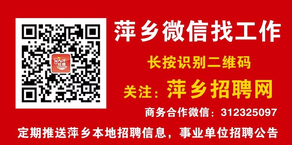 面试时请告知是在(萍乡招聘网)看到的信息 找靠谱工作选择萍乡招聘网 每家企业都是经过认真筛选 最大限度的避免求职者中上当受骗现象 关注:萍乡招聘网 找工作不会迷路