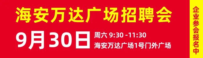 海安招聘网[Hazp.net]旗下招聘公众号,每天发布海安招聘信息,单位和个人可通过微信小程序或公众号菜单自助发布招聘求职信息,也可联系客服协助发布。服务电话/微信:189 6276 4799 |
