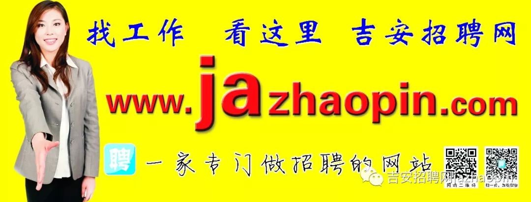 ![]() 找人才、好工作 搜吉安招聘网www.jazhaopin.com 免费注册免费发布,客服电话:0796-8222010 招聘求职,请长按识别以下二维码,添加招聘客服微信