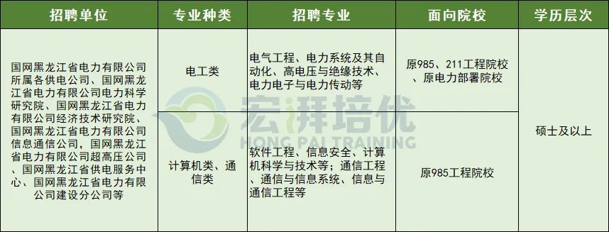 一、公司简介 国网黑龙江省电力有限公司是国家电网有限公司全资子公司、特大型国有骨干企业,承担着建设、运行维护黑龙江电网和全供电区安全可靠供电的任务。公司供电面积47万平方公里,占东北供电区域总面积的58.3%,服务各类客户1870万户,供电人口3800万。直接管理单位33个,其中地市级供电企业13个,农垦及县供电企业80个。共有500千伏变电站18座、运行容量2041万千伏安;220千伏变电站151座、运行容量3270万千伏安;500千伏线路51条、总长7052千米;220千伏线路487条、总长15815千米。总装机容量为3425万千瓦,系统最大负荷1213万千瓦。先后荣获全国文明单位、全国五一劳动奖状等称号。 二、校园招聘基本条件 1.国家统招计划内的境内普通高等院校2023届应届硕士及以上研究生,本科阶段所学专业应与研究生阶段相同或相近。 2.硕士研究生年龄一般不超过28周岁(1995年6月30日以后出生),博士研究生年龄一般不超过33周岁(1990年6月30日以后出生)。条件特别优秀的,年龄可适当放宽。 3.应聘毕业生应具有良好的思想品德和道德素质,吃苦耐劳,具有良好的团队意识,遵守国家法律法规和学习规章制度,遵守社会公德,无不良记录。 4.应聘毕业生应身体健康,符合国家公务员录用体检标准,能适应电力企业工作。患有以下疾病者不在录用范围:色盲、色弱、双眼矫正视力低于1.0;双耳听力障碍;四肢功能性残疾;有恐高症或严重心血管疾病等不适合电力登高生产作业的疾病;其它经指定医疗机构鉴定认为不适应电力作业岗位的疾病。体检不合格的应聘毕业生,招聘方有权取消其应聘及录取资格。 三、校园招聘专业 ![]() 说明:1.招聘专业均指主修专业,不包含辅修专业及第二学位专业。最终招聘数量根据上级单位核对情况相应调整。 2.电工类择优招聘985工程院校2023年应届全日制本科毕业生(需参加国网公司统一招聘考试并达到划定分数线),年龄一般不超过25周岁(1998年6月30日以后出生)。 四、行程安排 ![]() 五、有关注意事项 1.务必请有意加入国网黑龙江省电力有限公司的同学,将个人简历及相关资料以“个人姓名+学校”方式发送至邮箱“gwhljzp@163.com”。 2.准备相关资料:参加面试的同学请携带身份证,学生证,三方协议(如有),个人简历(三份),个人成绩单(三份),最高学历的学籍验证报告(学信网下载)打印件,就业推荐表(加盖学校公章)、成绩单(加盖学校公章),外语和计算机等级证书原件及复印件等。