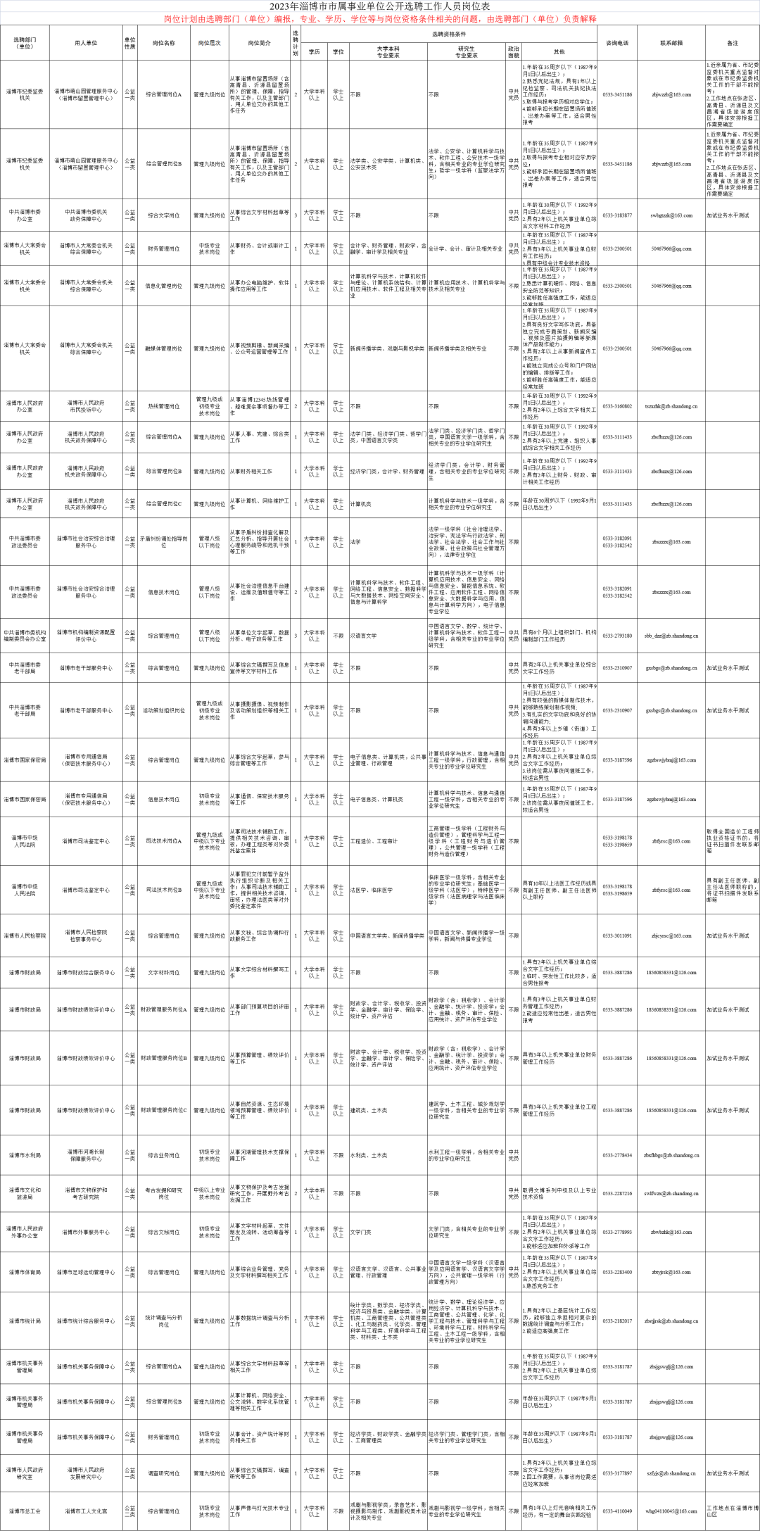 附件:1.2023年淄博市市属事业单位公开选聘工作人员岗位表