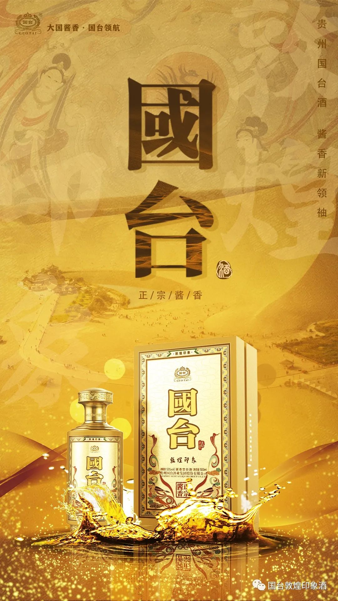 国台一一中国第二大酱酒企业,敦煌,人类的敦煌世界的敦煌、悠久的历史文化、最好的酱酒品质与最悠久的敦煌文化相结合,诞生了名门之秀一一国台·敦煌印象。