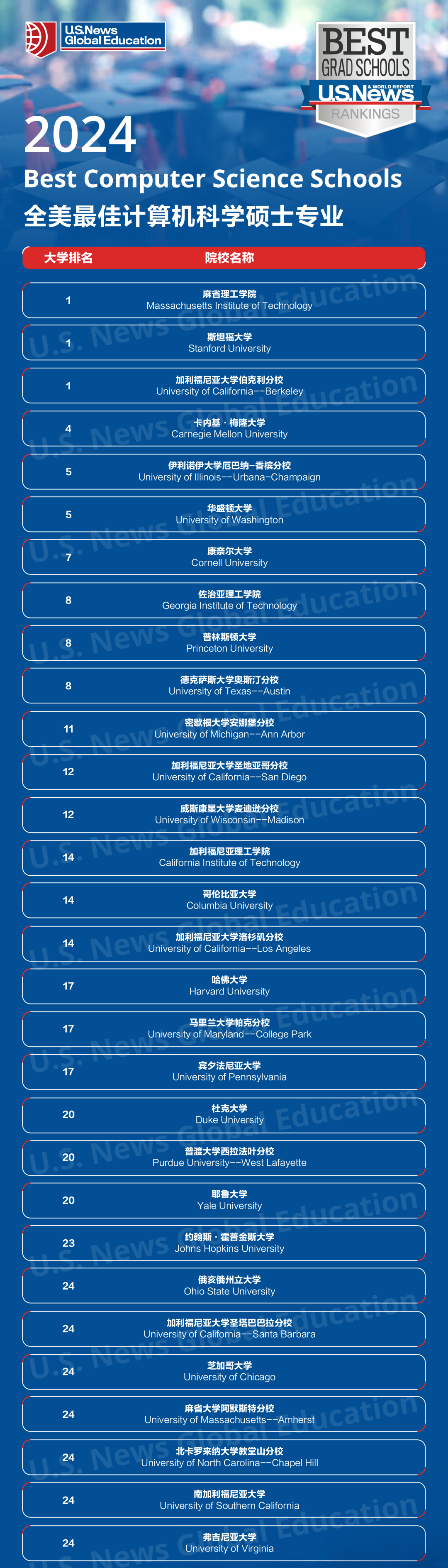 美国劳工统计局就业预测表明,计算机科学毕业生的就业前景非常广阔。 计算机与信息技术广泛地应用于各行各业,在2021年至2031年期间,美国计算机和信息技术职业的就业人数预计将增加15%,是所有职业中,平均预期增长速度最快的。同时,这些专业毕业生的收入在美国所有职位中也是最高之一。 根据美国劳工统计局数据,在2021年5月,计算机和信息技术硕士学位的毕业生可以从事软件开发工程师、数据工程师、架构师、机器学习工程师、应用程序员等岗位,平均年薪在10万美元左右。 全美最佳计算机科学硕士专业TOP30