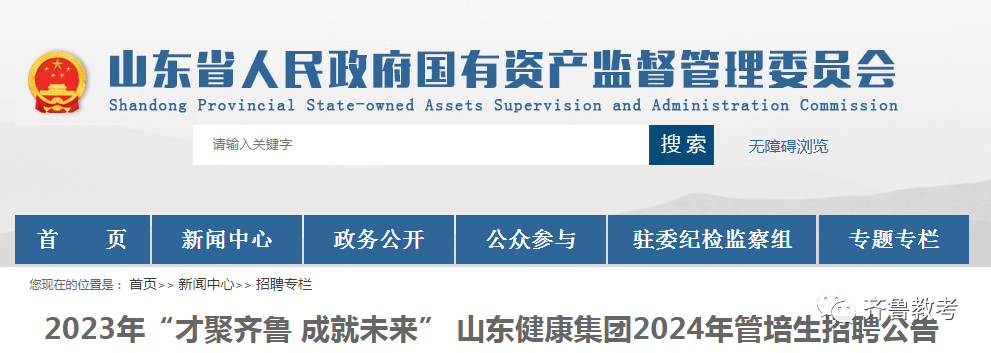 国企:山东健康集团2024年管培生招聘公告(20名)