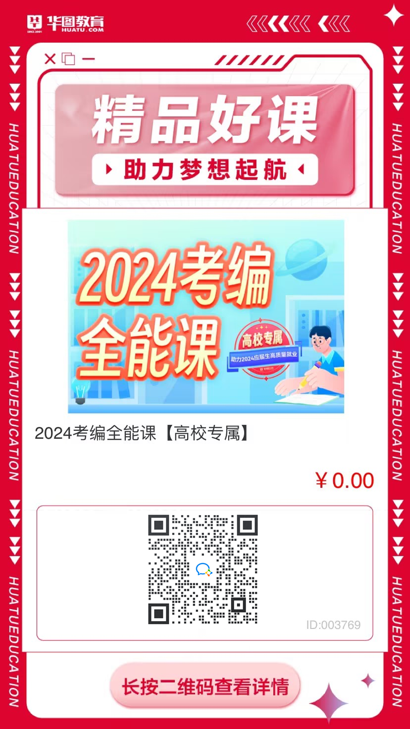 三、招聘办法和程序 (一)报名方式及时间 1.报名起止时间:2023年9月19日至9月24日。 2.报名办法:填写报名表,以“姓名 学历 应聘岗位 专业”为邮件标题,发送至wprlzp@163.com 邮箱(广州市万聘人力资源服务有限公司洛阳分公司报名邮箱,联系电话:17603999707)。 3.相关证件提交要求: 考生需要提供各学历毕业证、学历电子注册备案表、资格证及相关证件电子版; (二)资格审核 报考者须在考试前进行现场资格确认。资格确认采取报考者本人现场提交材料的方式进行,其他人代理无效。需要提交以下材料(原件及1份复印件): (1)有效身份证。 (2)历任毕业证及学位证、学历证书电子注册备案表(中国高等教育学生信息网上打印)。 (3)职称证等相关证书。如已通过考试但尚未发证,请提交成绩单。 (三)面试(具体时间另行通知) 面试采用专业化结构面试。面试内容包括:专业知识、实践技能、综合分析、人际沟通、语言表达、应变能力和举止仪表等。面试采取答辩形式进行,要求报考者在规定的时限内完成。面试成绩满分为100分。按面试成绩高低确定排名。如果面试成绩均相同,则加试面试,排出名次。 (四)试班 根据拟聘用计划,按拟聘用计划1:1的比例从高分到低分确定进入试班环节人员。因报考者自动放弃试班形成的空缺,将按总成绩从高分到低分的顺序依次递补进入试岗。 (五)体检 根据试班情况,结合总成绩排序,按拟聘用计划1:1的比例从高分到低分确定参加体检人员。体检标准及项目参照公务员录用体检的有关规定执行。体检不合格者不予聘用。因报考者自动放弃体检或体检不合格形成的空缺,将按总成绩从高分到低分的顺序依次递补。 扫码添加老师获取0元考编网课