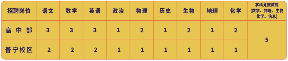 汕头市潮阳实验学校诚聘高中教师和竞赛科教练 汕头市潮阳实验学校学校创办于2000年,是一所从小学到高中十二年一贯制的全日制寄宿学校,学校先后被评为全国教育系统先进集体、广东省一级学校、广东省国家级示范性普通高中、广东省先进民办学校。是北京大学、清华大学等一流高校“强基计划”推荐资格学校,获得清华大学等多所重点高校的“优质生源中学(基地)”的称号。学校秉持“育人为本,质量立校”的办学理念,因材施教,教育教学质量名列省、市前茅,是广东省质量高、规模大的品牌学校,教师有满满的工作成就感和生活幸福感,福利待遇优厚。 为适应学校发展,现面向各高校诚聘优秀应届毕业生! 一、招聘岗位 二、岗位要求 【基本要求】 热爱教育事业,身心健康,形象气质好,乐教善教。普通话标准,表达流畅。 【学历要求】 具有国家正式本科以上学历,重点师范大学或综合性重点大学的优秀毕业生优先,硕士、博士学历优先。学科竞赛教练获得过全国联赛省级一等奖以上且学业成绩优异者优先。 三、福利待遇 【高中】 应届本科毕业生(满工作量)年薪24万。 北大、清华应届毕业生(满工作量)年薪26万。 应届博士毕业生待遇面议。 学科竞赛年薪30万以上,奖金另计,特别优秀者面谈。 【其他福利】 五险一金、节日慰问、带薪寒暑假、免费住宿(单人公寓/夫妻套房)、食堂免费就餐、专用健身房、教师子女享有从幼儿园到高中的优质教育资源,并享受入学优惠。 关注公众号 回复 0921 有用的话,请点个在看吧~ |