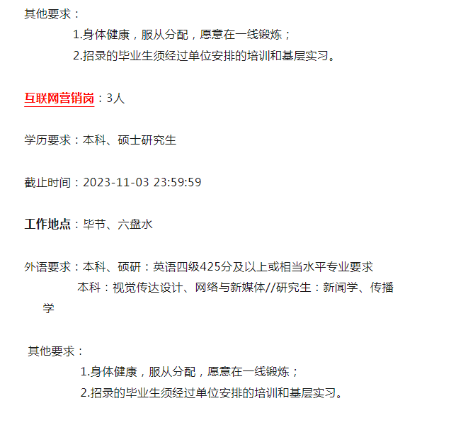 >央企!贵州石油分公司招聘!六盘水有岗!无经验要求!