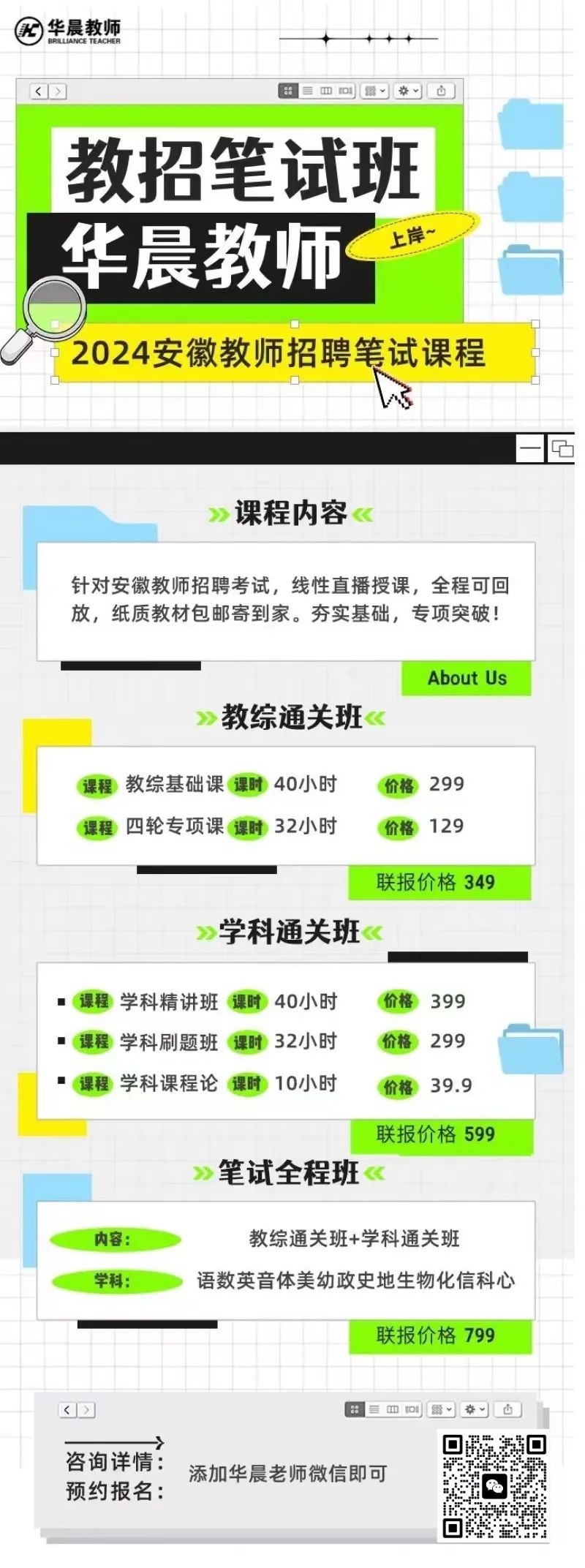 颍州区教师招聘工作领导小组办公室 2023年9月21日 ![]() 最新回复你们点点“分享”,给我充点儿电吧~ 24阜阳 教招备考群已建 可以添加下方老师微信进群 咨询更多教师招聘备考问题 群内每天更新安徽教招最新消息~ 教师招聘笔试必备课程 全程班 系统化备考 高效学习 所有课程均可单独购买 |