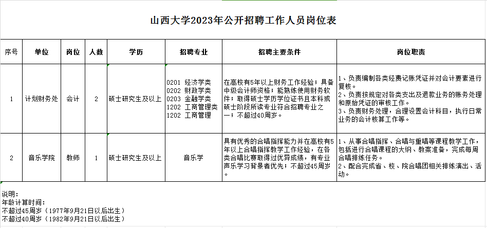附件:1.山西大学2023年公开招聘工作人员岗位表