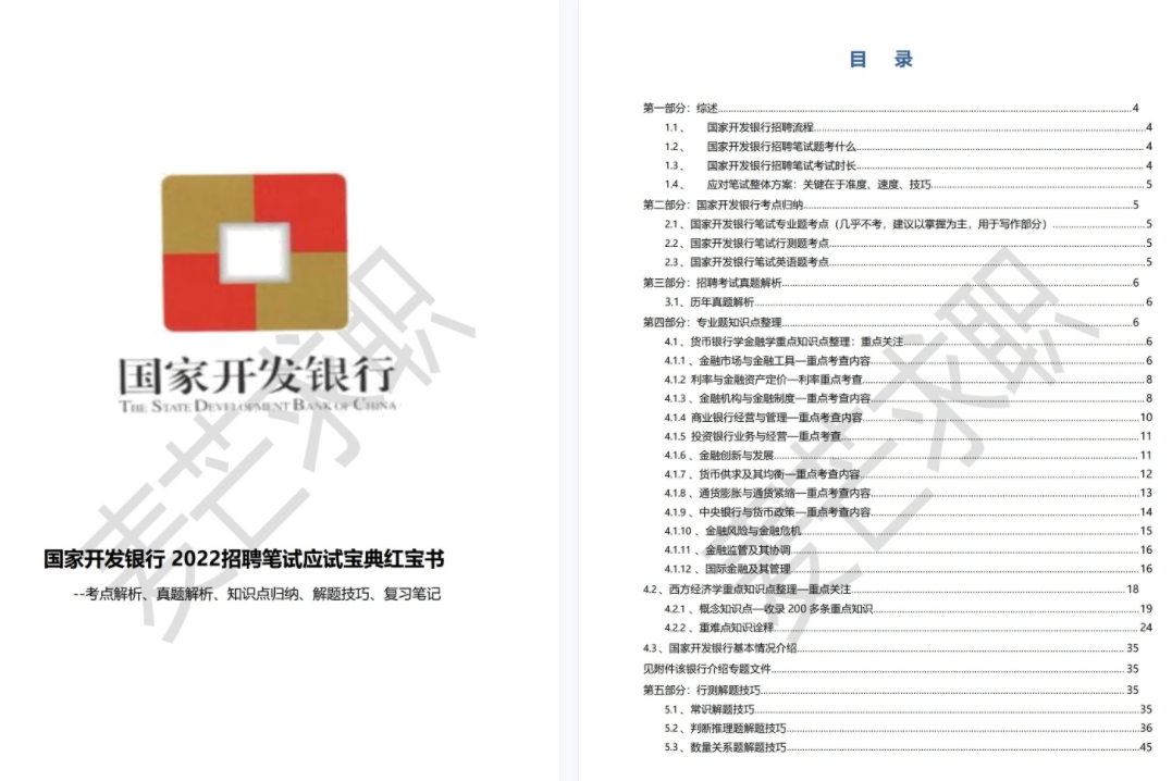 为了帮助各位小伙伴顺利拿到offer,小编为大家准备了84页【国家开发银行招聘最新笔试应试宝典红宝书讲义(完整版) - 真题解析、考点知识点归纳、模拟题练习】,公众号后台回复【国开行】直接领取~