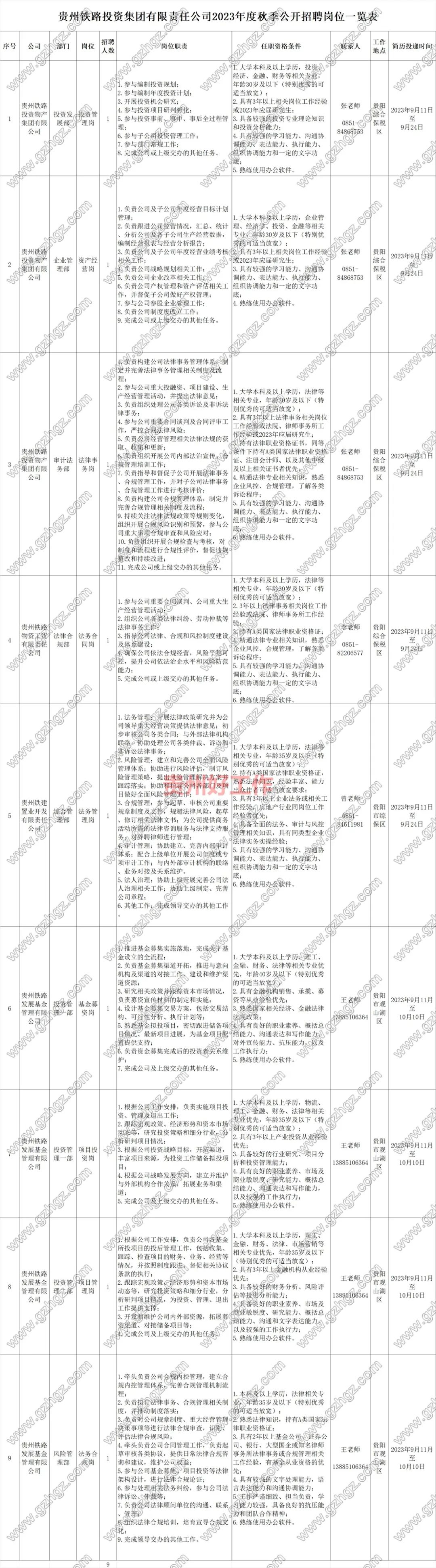 贵州铁路投资集团有限责任公司2023年度秋季公开招聘公告