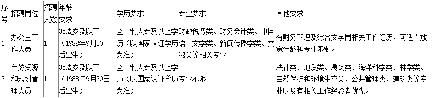 因工作需要,舟山市自然资源和规划局新城分局拟向社会公开招聘劳务派遣工作人员2名,现将有关事项公告如下: