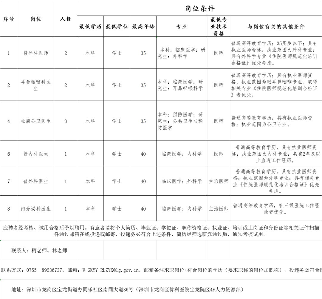 原标题:深圳市龙岗区骨科医院公开招聘公告