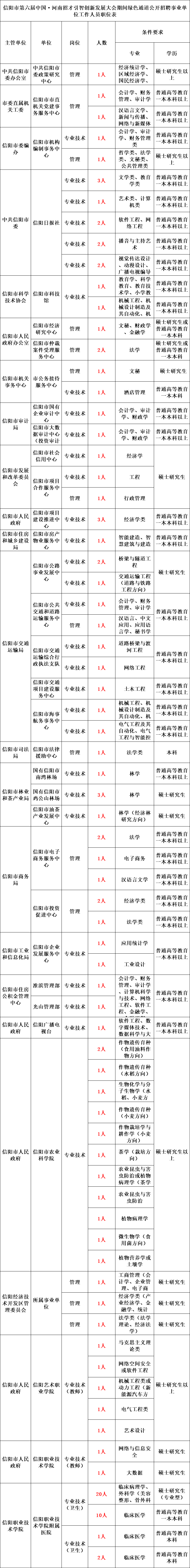附件:1、信阳市第六届中国·河南招才引智创新发展大会期间绿色通道公开招聘事业单位工作人员职位表点击获取.xlsx