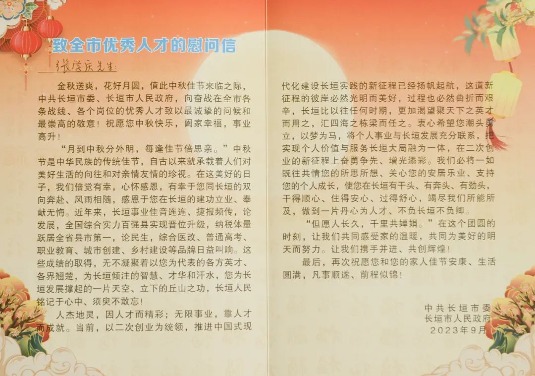 9月22日下午,在双节来临之际,长垣市人大常委会主任宋太俊,长垣市政府副市长夏鹏远一行代表市委市政府到我校慰问外聘高层次人才,感谢大家为长垣教育高质量发展作出的突出贡献,向大家致以节日的问候和祝福。