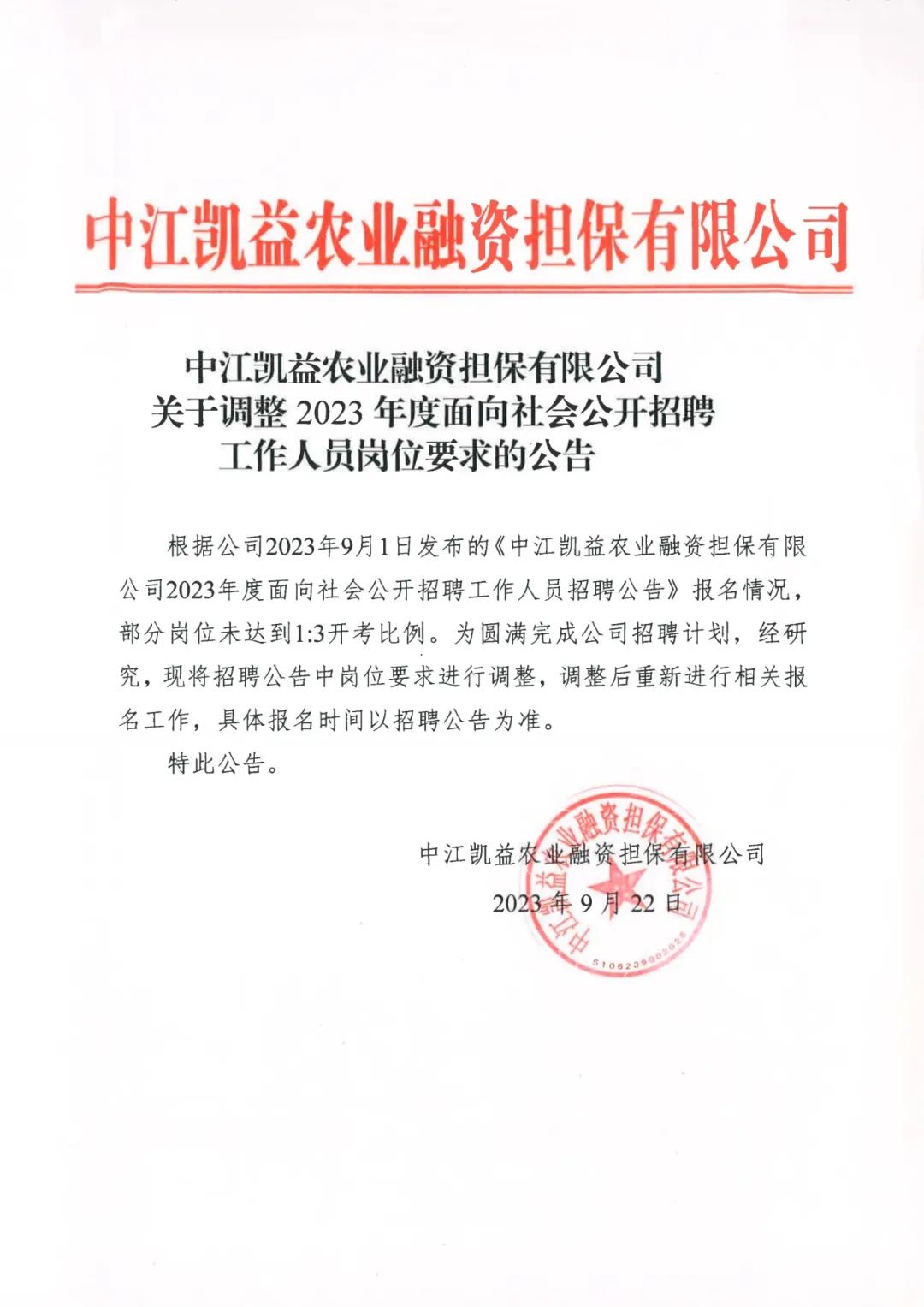 招聘岗位及名额详见《中江凯益农业融资担保有限公司2023年面向社会公开招聘工作人员岗位情况表》(以下简称“岗位表”)。