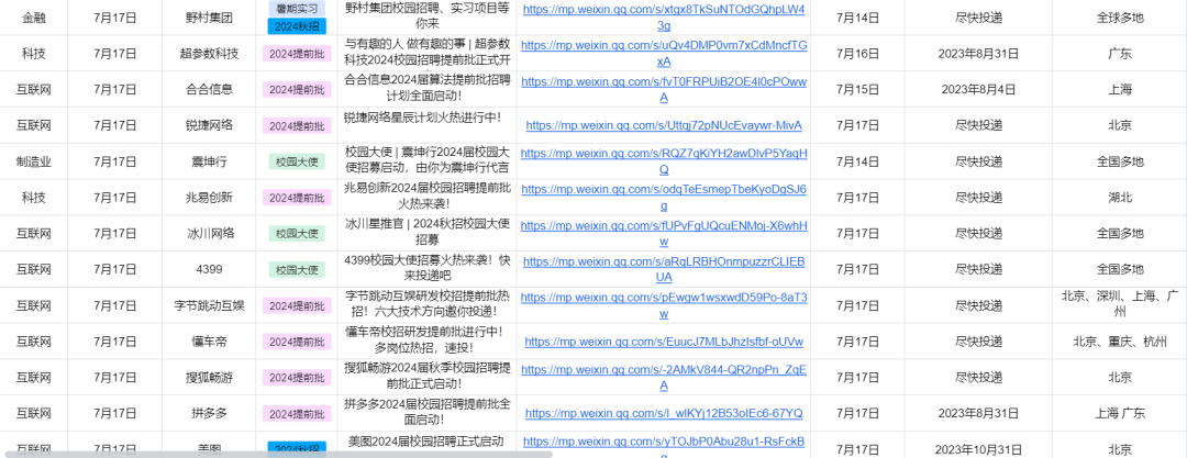 2.校招提前批/秋招信息表pro版每天更新!(更新到2024年1月31日)