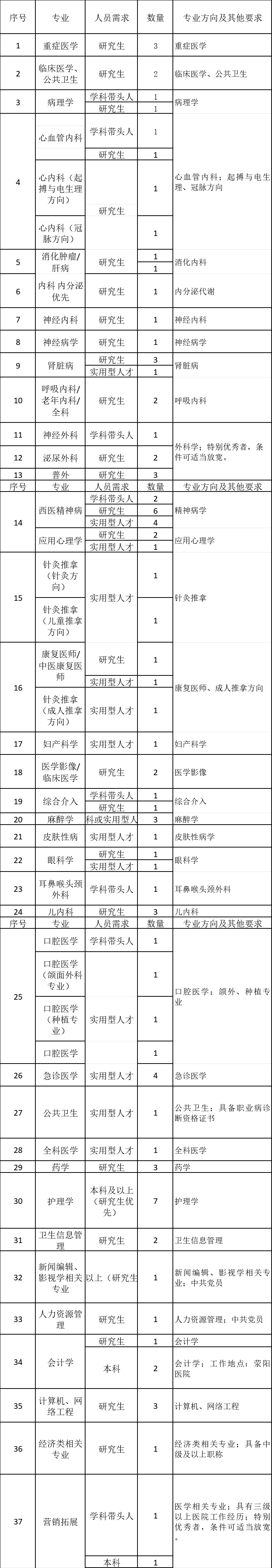 根据医院发展需要,现面向全国招聘专业技术人才,现将招聘事宜通知如下: