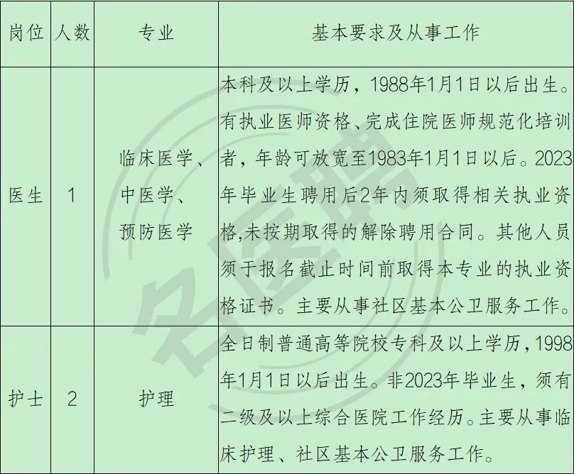 (5)非2023年毕业生根据岗位基本要求,还须提供相关证书(护士执业资格证书、医师执业证书、专业技术资格证书、住院医师规范化培训合格证书等)、能证明在二级及以上综合医院工作的相关材料(如工作证明或劳动合同或社保缴费证明等)原件及复印件一份;以上材料均需提供原件及复印件一份。