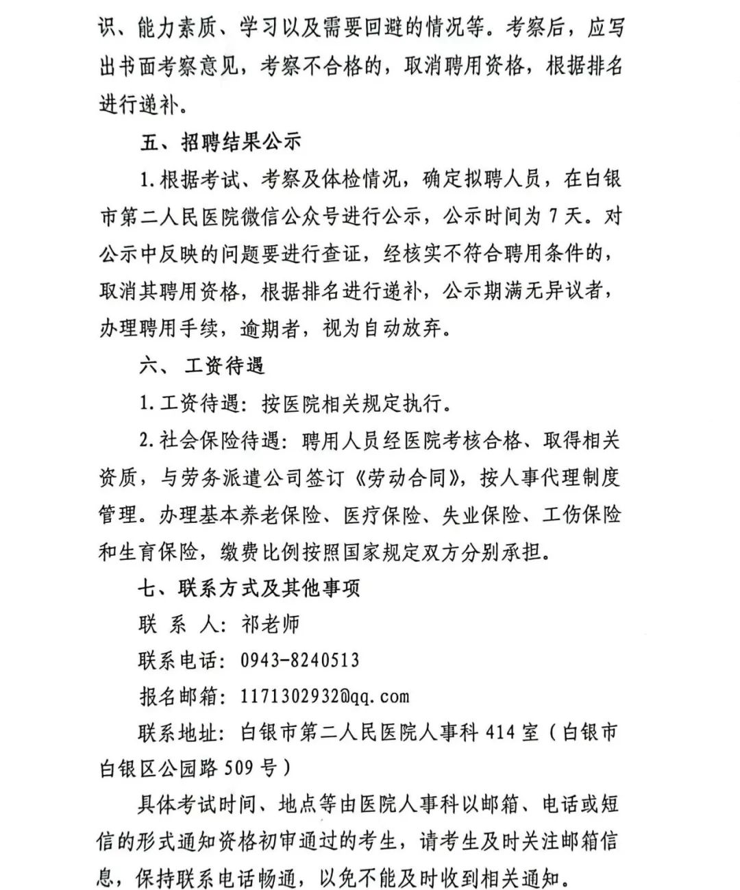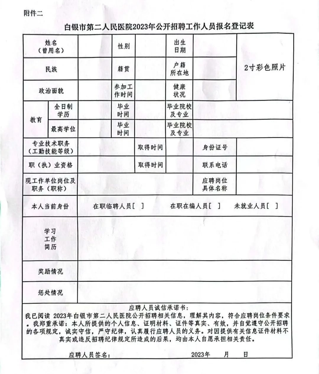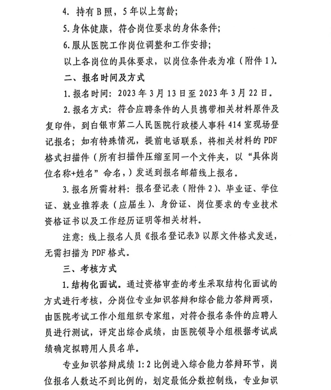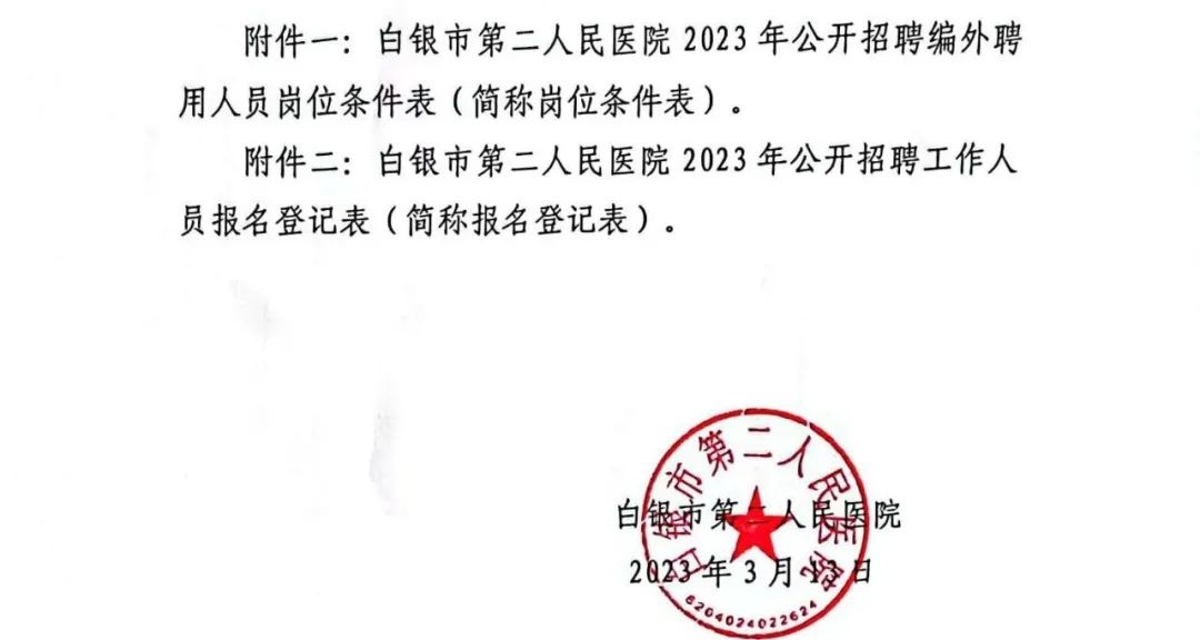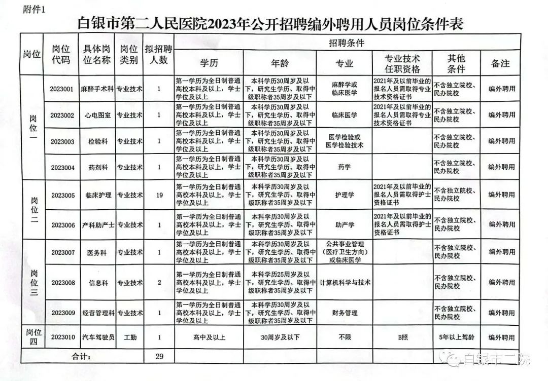 1.白银市第二人民医院2023年公开招聘编外聘用人员岗位条件表