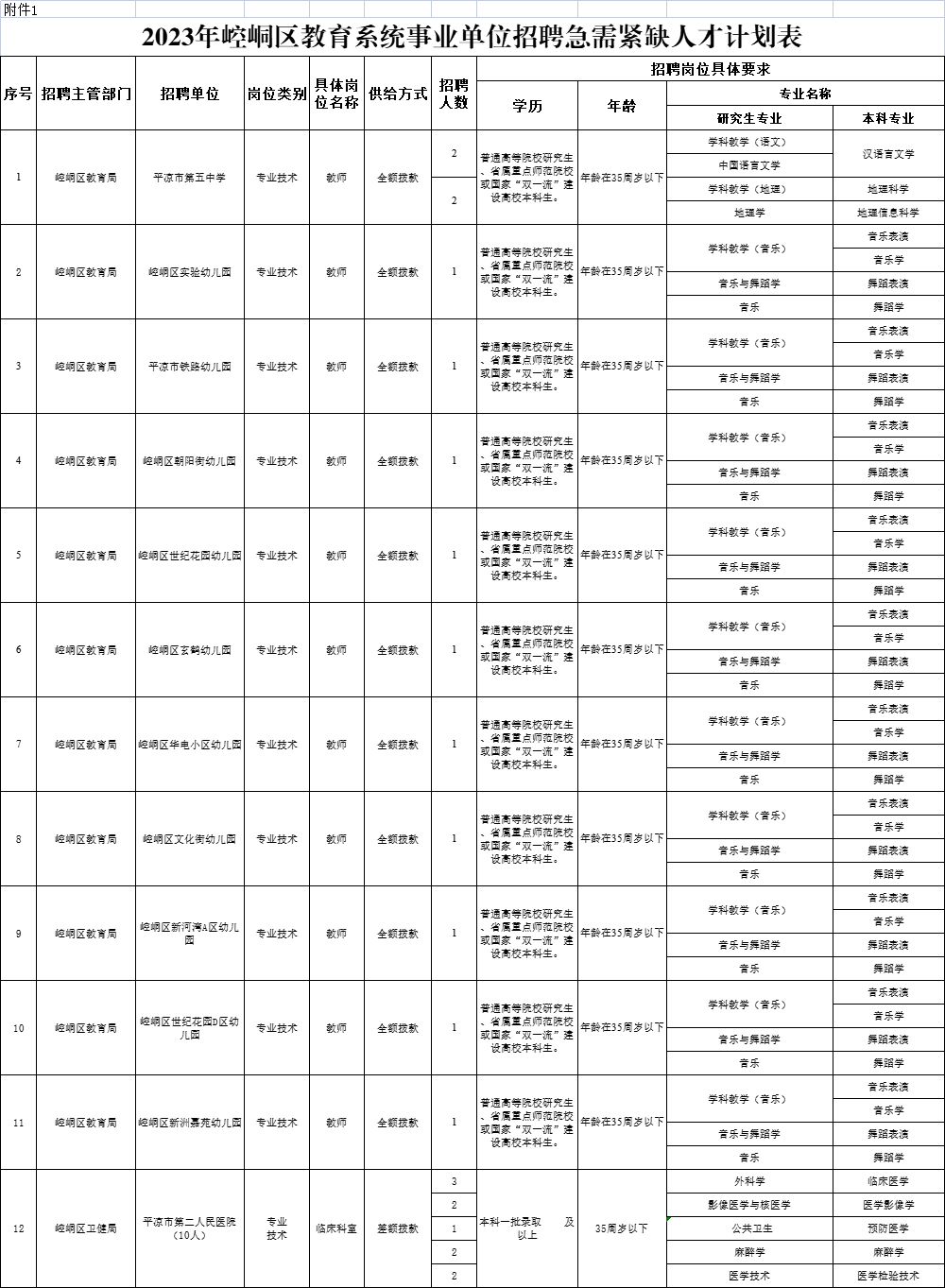 根据《平凉市事业单位公开招聘人员实施办法(暂行)》(平办发〔2011〕59号)规定,崆峒区教育卫健系统继续面向社会招聘急需紧缺人才,现将有关事项公告如下:
