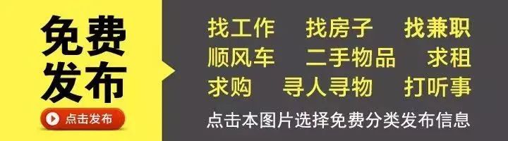 本地同城便民信息平台可以发布:招聘/求职、顺风车、寻人/寻物 房屋/租售、征婚/交友、家政服务房屋出租/出售、门面/商铺出租/出售租房、购房,房源,新房,二手房,转让搬家/运输、疏通/开锁、商业资讯 车辆买卖(新车/二手车)以及同城商家入驻您都可以免费发布关注下方公众号即可进入▽▽