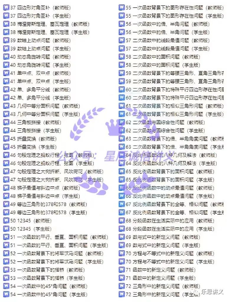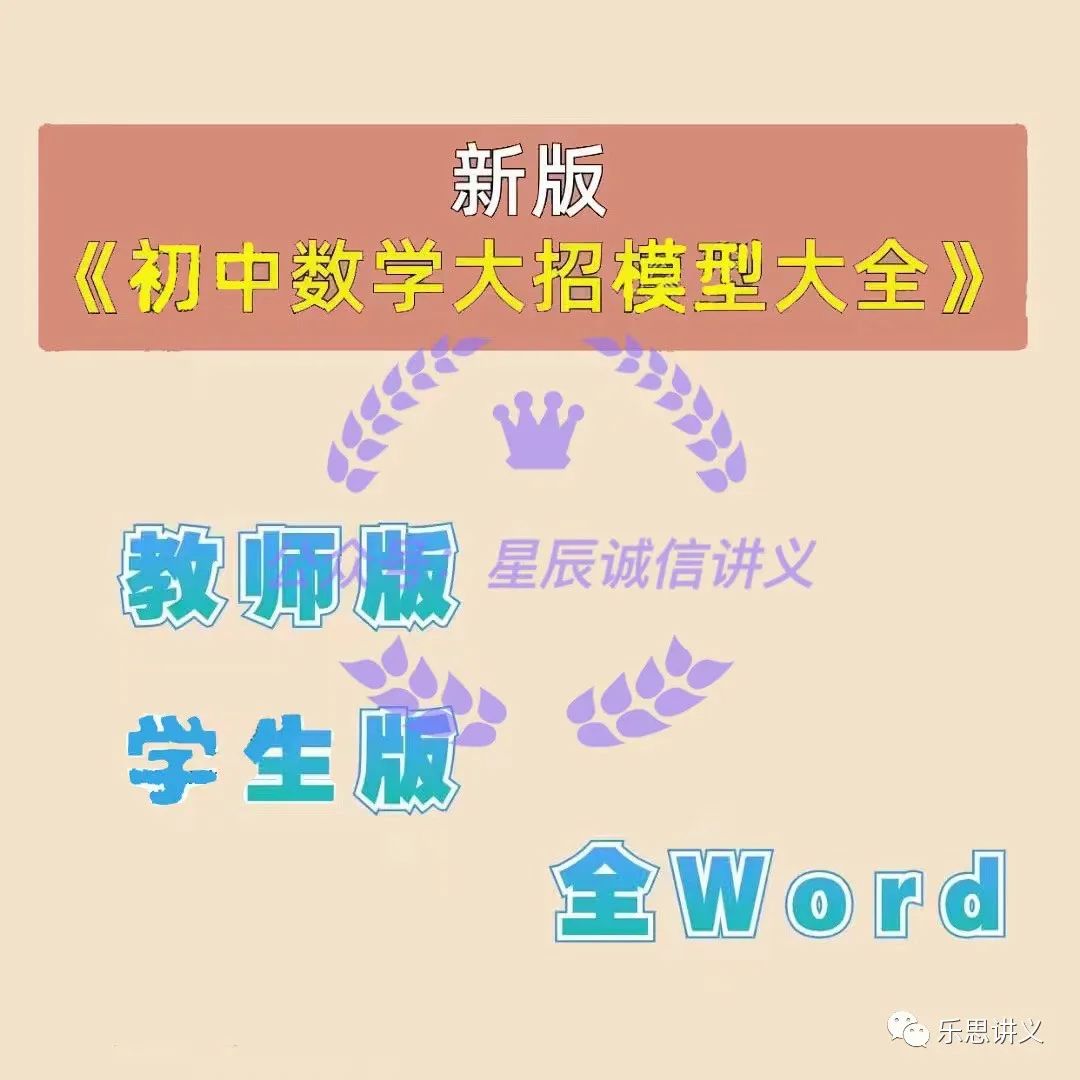 >《初中数学大招模型大全》全word几何模型通法50个,函数模型通法18个,新定义热点题型6个