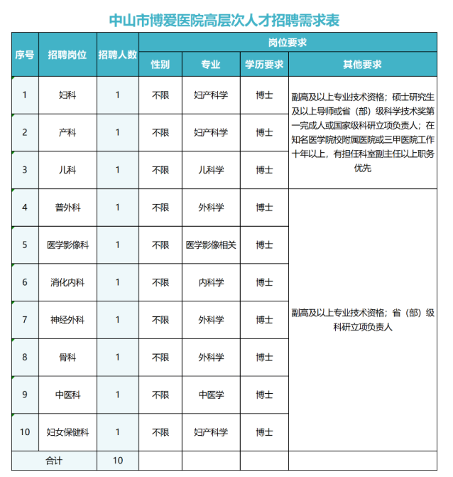原标题:诚聘高层次人才!中山市博爱医院(妇幼保健院)高层次人才招聘公告