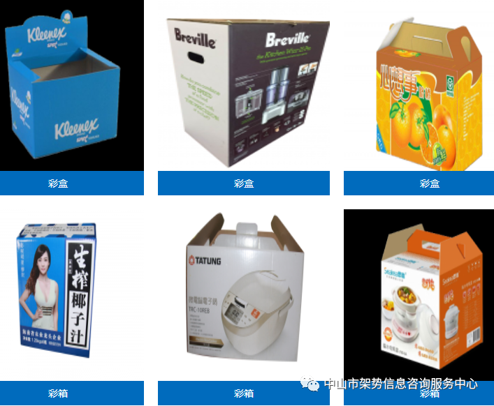 本公司主营各种瓦楞纸箱、彩箱包装,产品外表美观,印刷精美,纸箱耐破度高,抗压力强,本厂专人提供包装印刷设计、电脑排版、制版,以确保纸箱的印刷质量,使图案、文字达到完美的艺术效果。