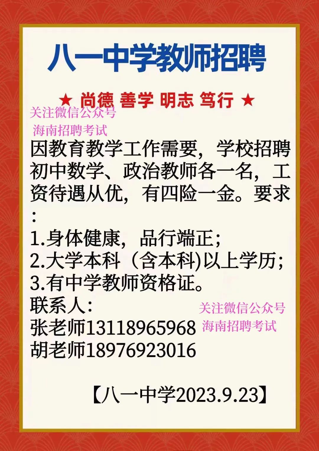 >三亚市八一中学2023年招聘教师 (公办学校)