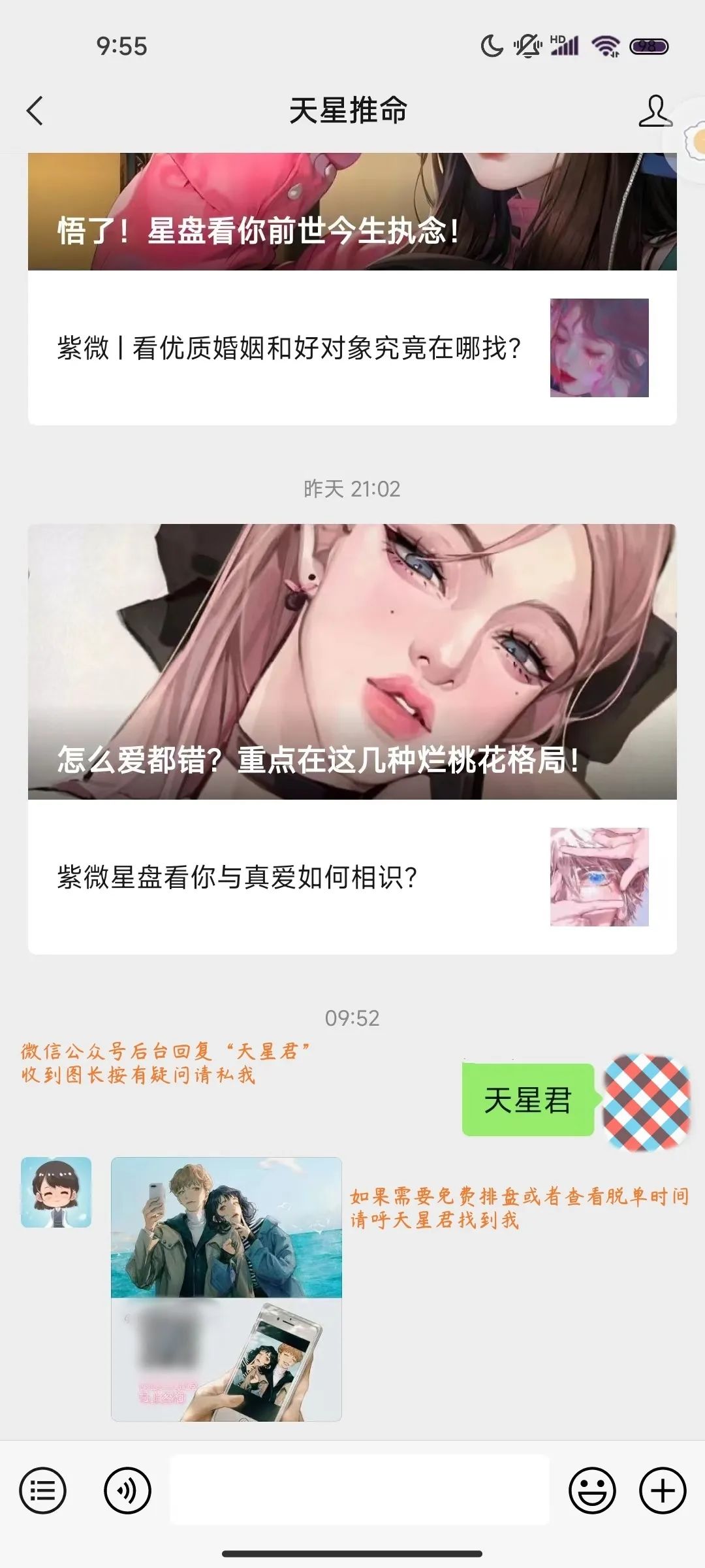 若不在以下情况,或者需要帮忙查询紫微命盘,请微信后台呼叫【天星君】免费查询排盘。