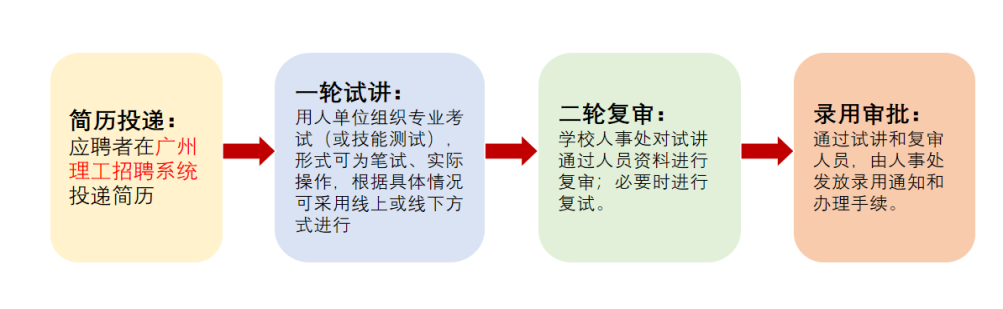 应聘者在广州理工招聘系统上进行简历投递(https://rsc.gzist.edu.cn/rszp.htm),填写个人相关信息、上传个人简历及相关佐证资料