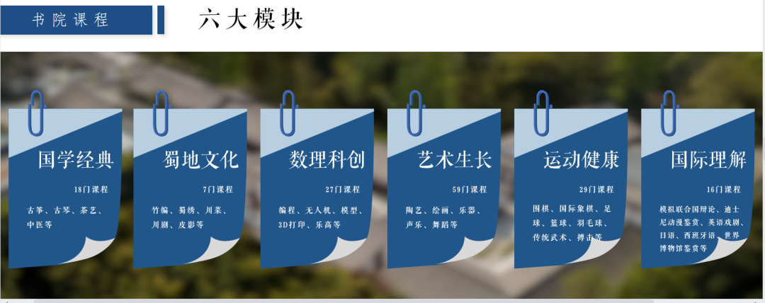 学校先后被评为“中国十佳特色示范学校”、“全国创新型民营学校”、“中外人文交流学校”、“青少年国学基地”、“四川少年儿童组织与思想意识教育研究中心协同创新实验学校”、“四川省基础教育研究中心协同创新基地校”、“四川劳动教育研究中心协同创新示范校”。被评为“华夏书院文化研学实践营地”、“四川省教育学会研学实践专业委员会协同创新示范基地”、“四川省旅游协会研学实践教育营地”,是郫都区教育国际化工作先进单位、郫都区年度“先进办学单位”。