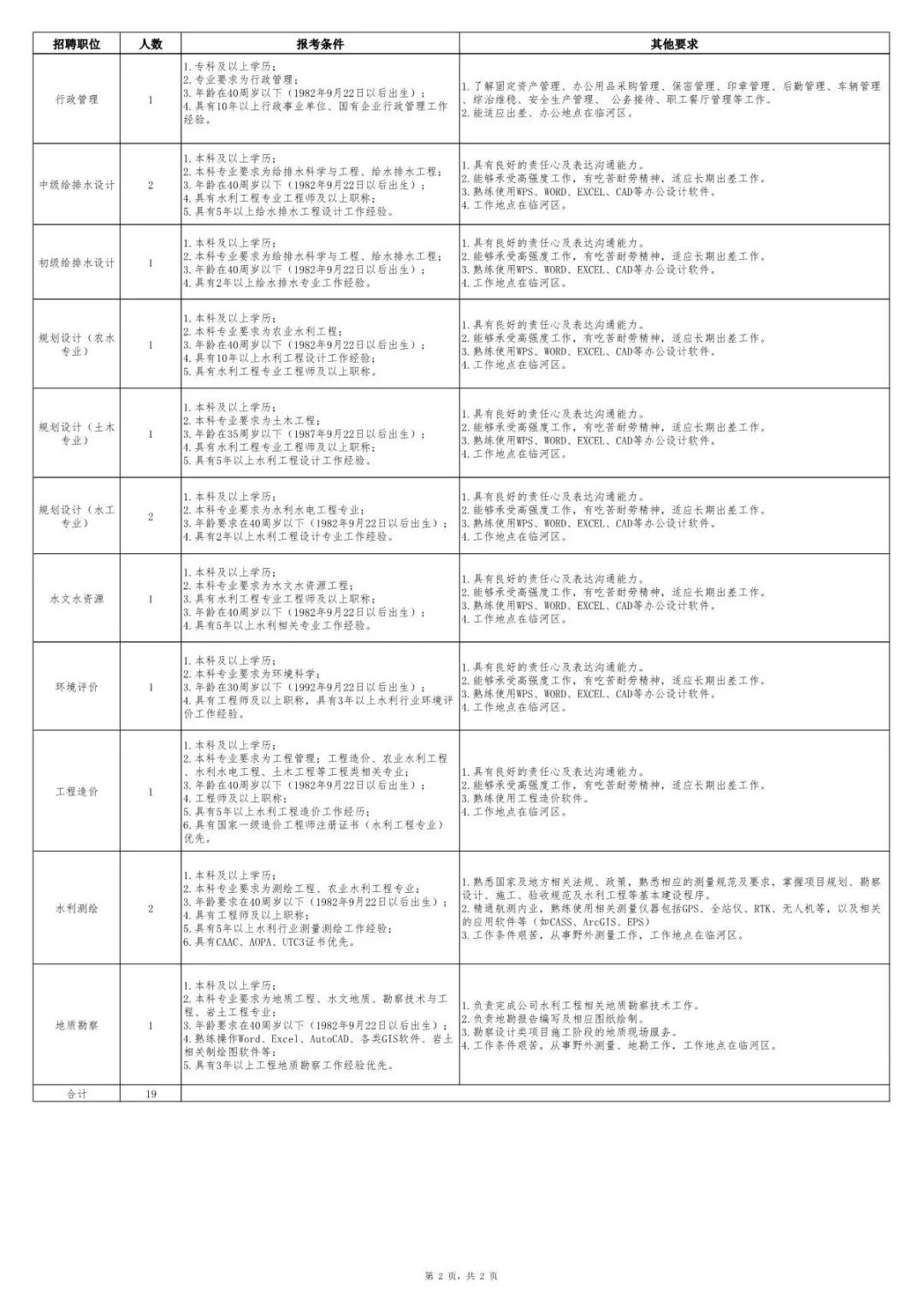 (一)内蒙古自治区水利水电勘测设计院有限公司有权调整招聘岗位和数量,录用人员需服从工作单位和岗位分配,对不服从分配者,公司有权取消其录用资格;