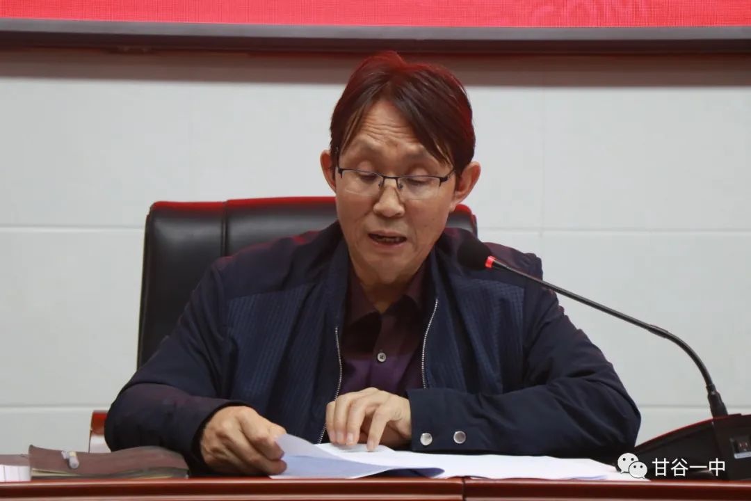 甘谷一中副校长谢永强同志宣读了《甘肃省甘谷第一中学“青蓝工程”实施方案》,组织学习了《教育教学考核细则》