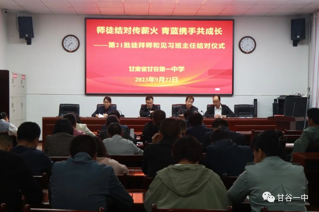 为加快推进教师队伍建设和新生力量培养工作,促进青年教师专业成长,充分发挥骨干教师示范引领作用,9月22日,甘谷一中举行了第21批徒拜师和见习班主任结对仪式。本次活动由副校长谢永强同志主持,学校各相关领导、九大学科教研室主任、第21批师徒结对的全体学科导师、班主任导师和2022—2023年新入职的全体青年教师共计40余人参加。