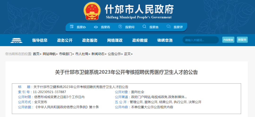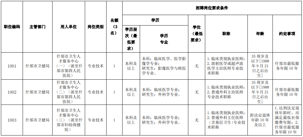 根据德阳市人社局、德阳市委组织部、德阳市委编办关于印发《德阳市事业单位考核招聘工作人员实施办法》及相关规定,经研究决定,什邡市卫生人才服务中心面向社会公开考核招聘3名优秀医疗卫生人才。
