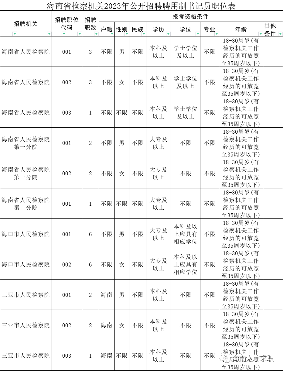 海南省检察机关2023年度公开招聘聘用制书记员公告